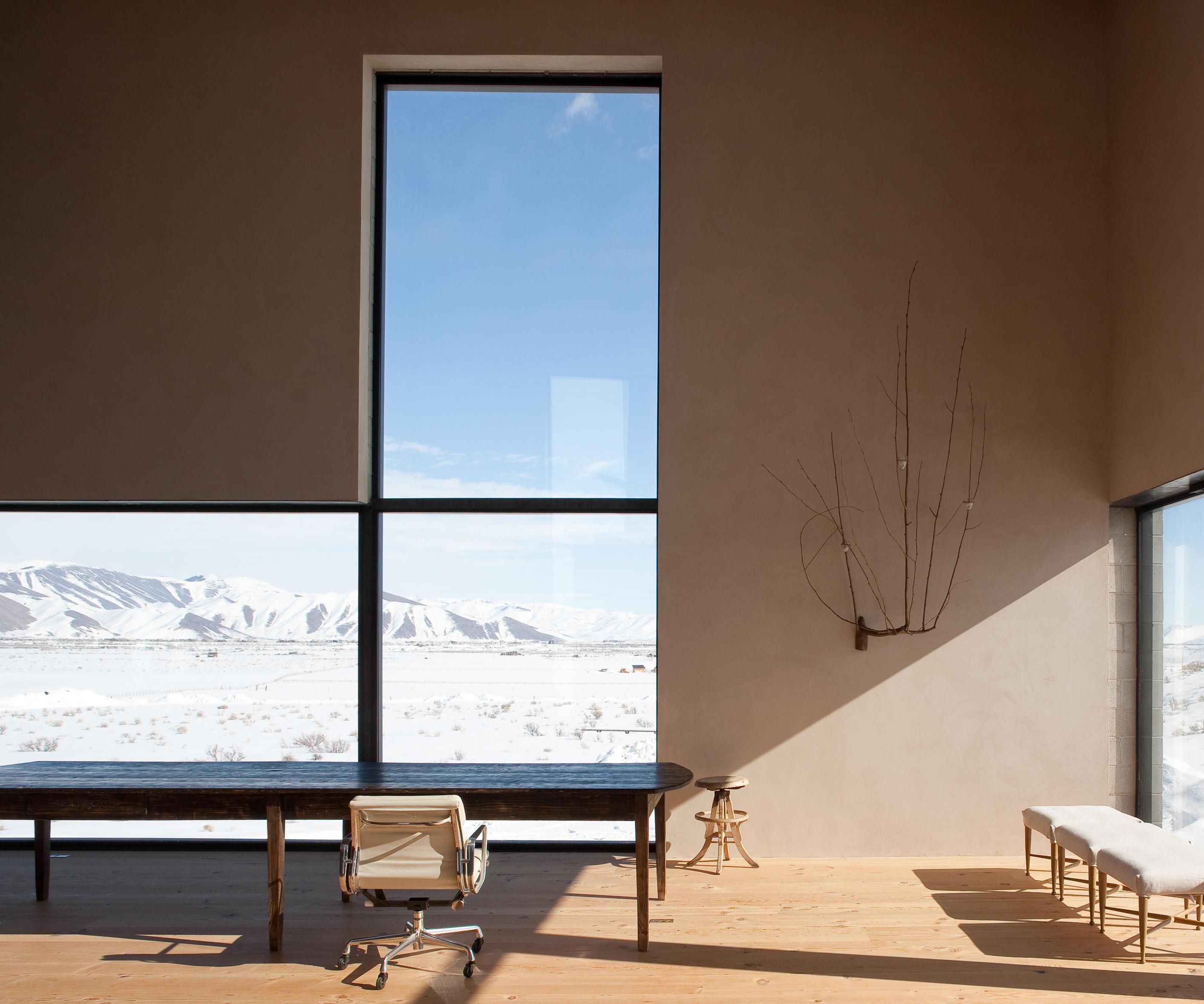 Similarly, in the harsh high desert of Idaho, an Olson Kundig residence nicknamed “Outpost” makes a statement amid the austere landscape, yet somehow hardly interrupts the region’s endless expanse. The elevated main living level offers 360-degree views of the desert and mountains, with nary a neighbor in sight. “When you grow up in the Palouse [the high desert prairies of the Northwest], you learn quickly how insignificant your place in that larger landscape is,” muses principal Tom Kundig.