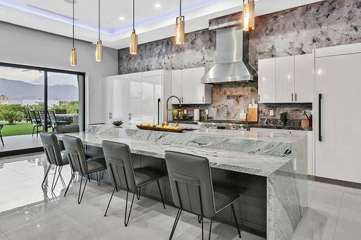 Architect Daniel Joseph Chenin also designed Fort 137, a luxury residence with panoramic views of Red Rock Canyon outside of Las Vegas, with the intent to encourage an emotional connection to both the desert landscape and the rich history of Nevada. The house features a soaring 28-foot entry rotunda — a modern interpretation of an old frontier fort in the Silver State — that reflects the experiential approach of Chenin’s firm. That element serves as a transition between the external desert heat and the cooler interior, further enhanced by soothing sounds of a stone fountain. “In researching architecture that addresses the hot, arid climate of the Southwest, it took us back to some of the settlement structures of the pioneers of the 1800s,” explains Chenin. “The idea of a stacked rock structure, similar to forts designed by the settlers of the time, really resonated.” Further embracing an indoor-outdoor desert