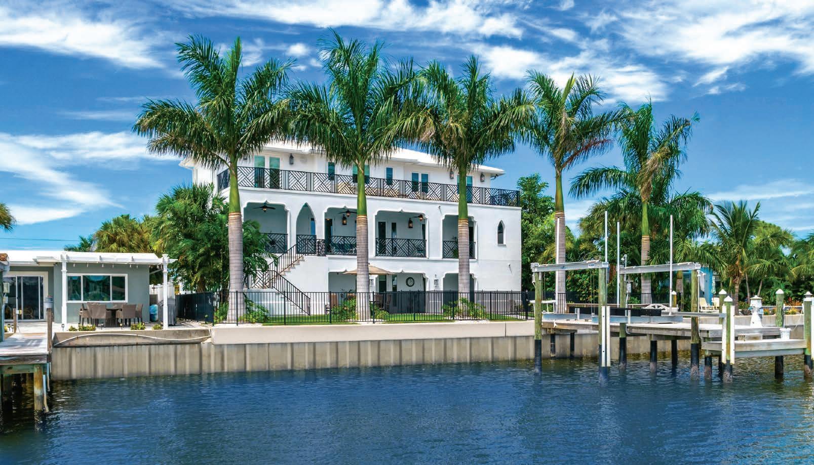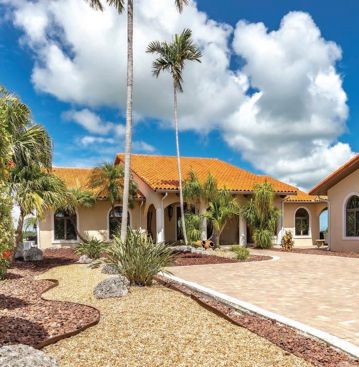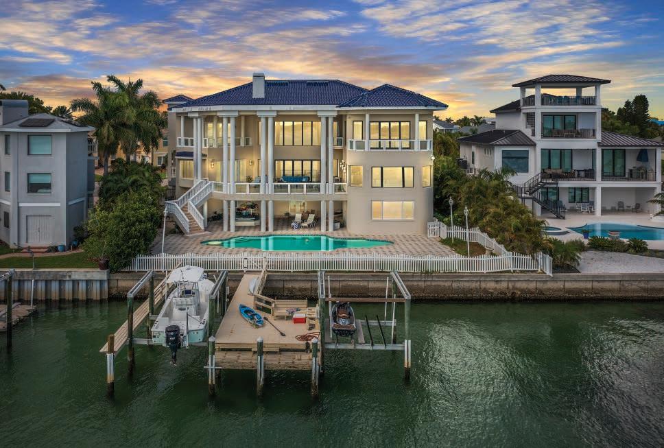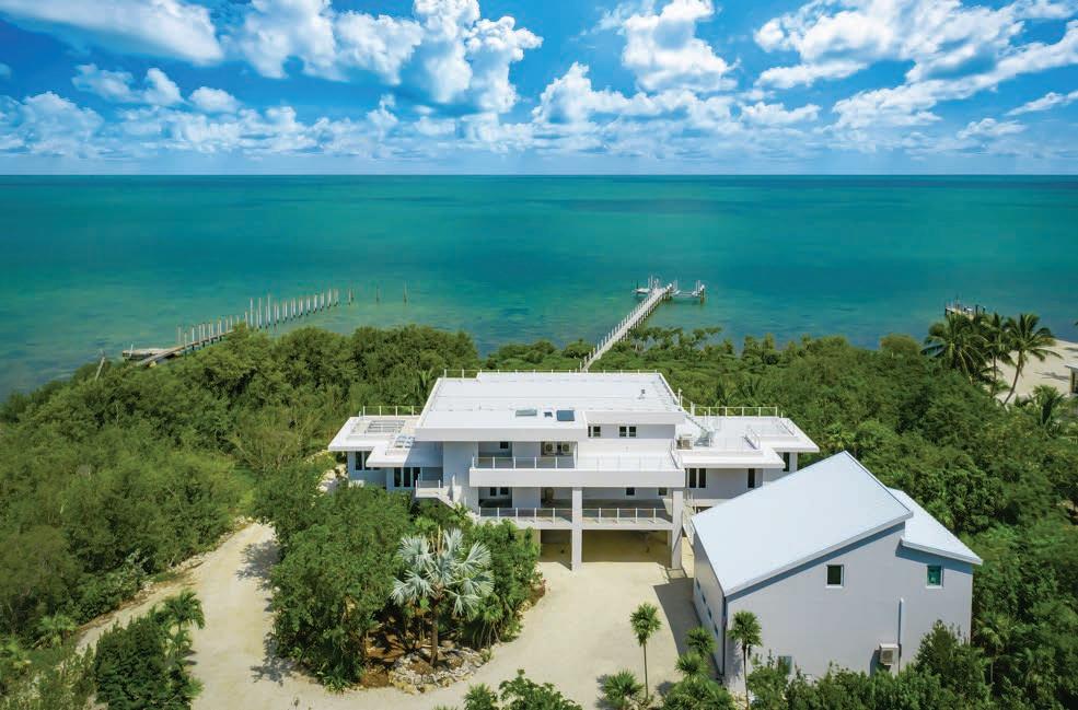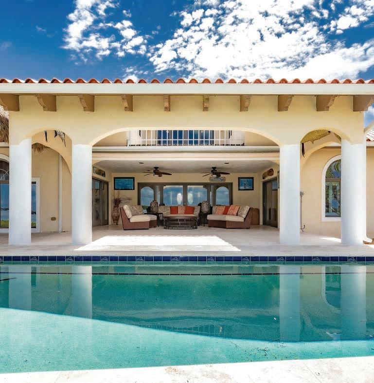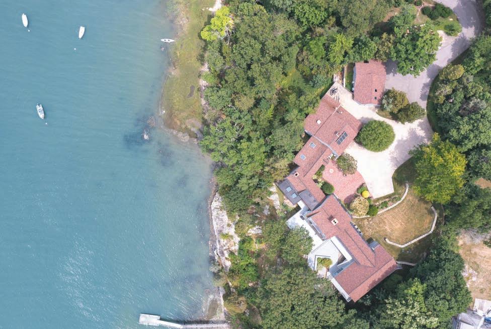 Comprising 2 homes, Water’s Edge and Royal View, this 44,758-square-foot property boasts 217 feet of water frontage and a private beach. Water’s Edge sits directly on the waterfront with breathtaking views from all rooms. It features a 384-square-foot deck hovering over the water.