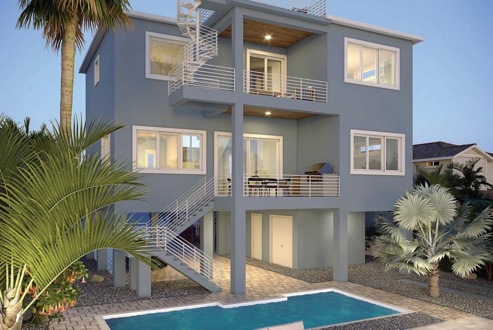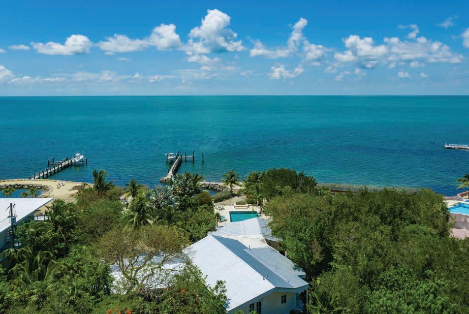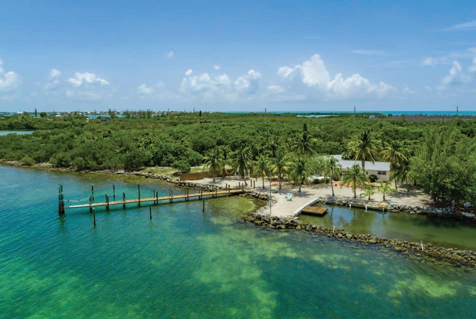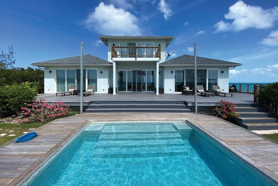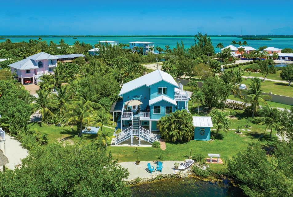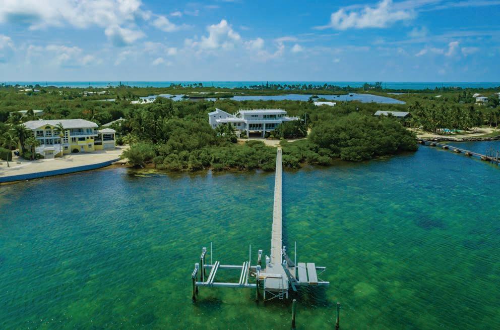 Comprising 2 homes, Water’s Edge and Royal View, this 44,758-square-foot property boasts 217 feet of water frontage and a private beach. Water’s Edge sits directly on the waterfront with breathtaking views from all rooms. It features a 384-square-foot deck hovering over the water.