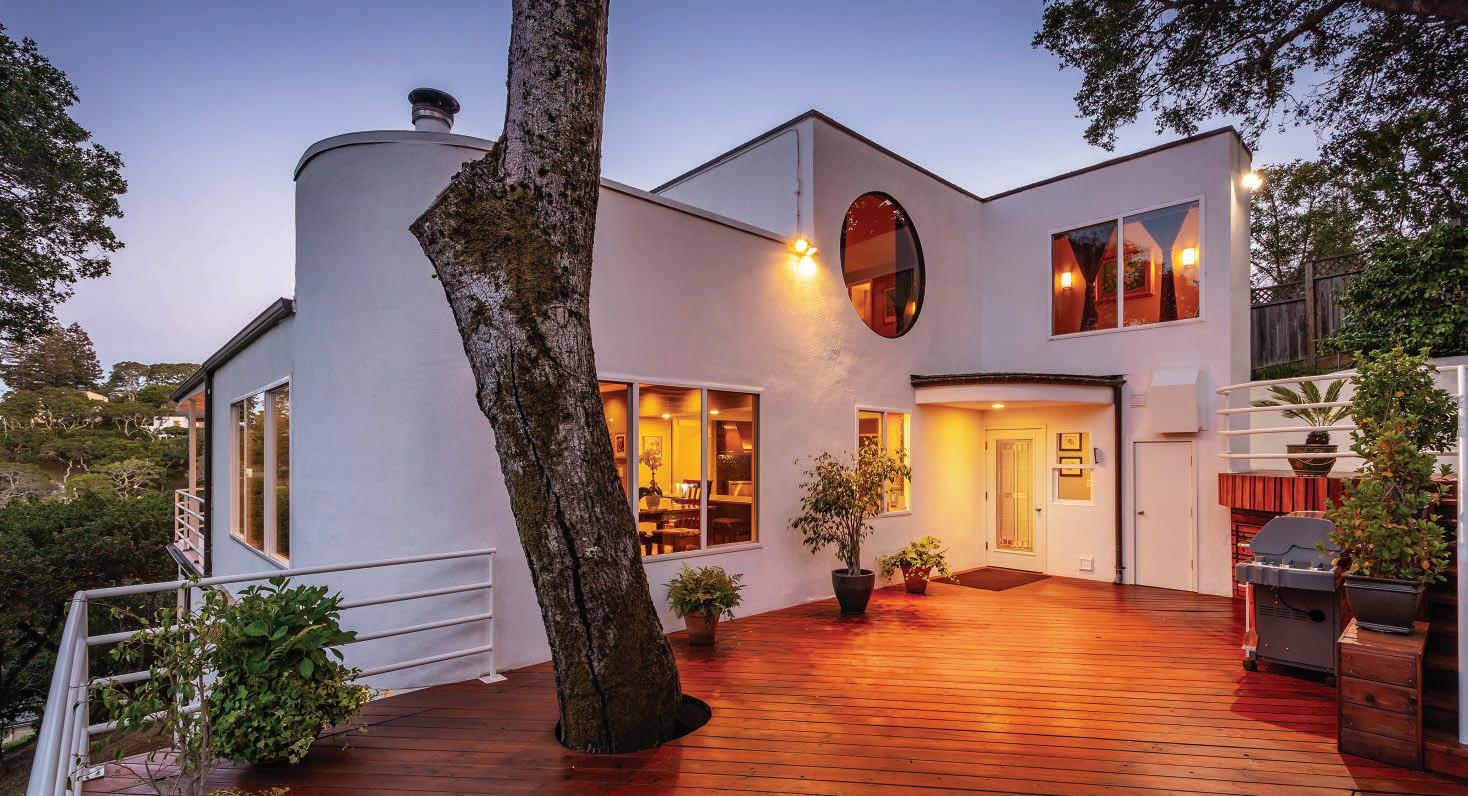 Outstanding Art Deco masterpiece on a .74-acre lot with spectacular views and over 5,000 square feet of sun-filled living space. Dramatic formal rooms with floor-to-ceiling, wraparound windows offer access to large decks showcasing the verdant canyon and breathtaking Bay views. Features include an office with built-ins, a temperaturecontrolled wine room, chef’s kitchen with a butler’s pantry, and an adjoining family room with walls of windows and a skylight ceiling. Beautiful detached guesthouse and amazing vibrant landscaping.