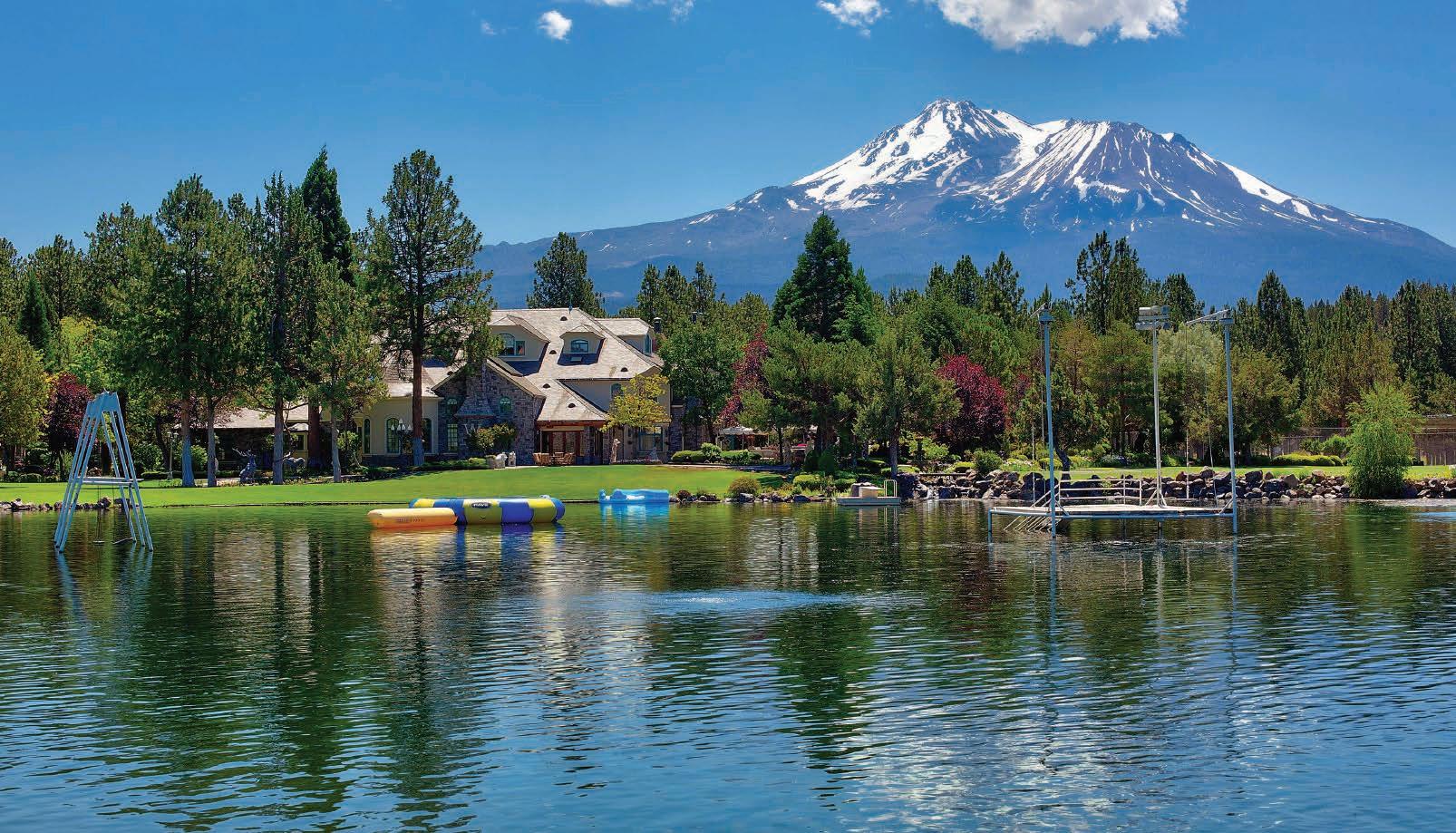 Chateau Du Lac is the ultimate lakefront estate boasting 40 acres nestled in the hills of Mount Shasta. This French Country-inspired, 5-bedroom mansion with nearly 20,200 square feet, plus 5 guest chalets and 3 additional houses, offers 17 bedrooms in total. Spend summers on the lake with your own private boat dock/ramp and take a dip in your private 1-acre pond.