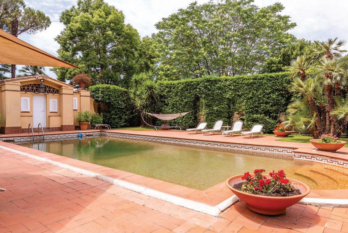 Luxury villa located in one of the most prestigious districts of Rome, surrounded by a private garden of about 3,000 square meters with a poolhouse. The house features a triple living room with a fireplace, dining rooms, study with boiseries, a large kitchen, and ironing/wardrobe.
