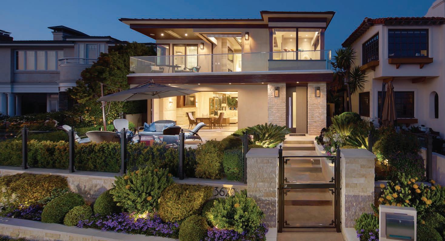 Capturing unimpeded views of the ocean, coastline, Catalina Island, and Newport Harbor, this soft-contemporary estate with an approximately 1,369-square-foot garage (up to 6 cars) offers a truly momentous lifestyle. Open-air entertainment areas consist of an expansive ocean-view front terrace and private courtyard with a pool and spa. A subterranean entertainer’s haven, primary suite with 2 separate baths, and a rooftop deck are additional highlights. 3620OceanBlvd.com