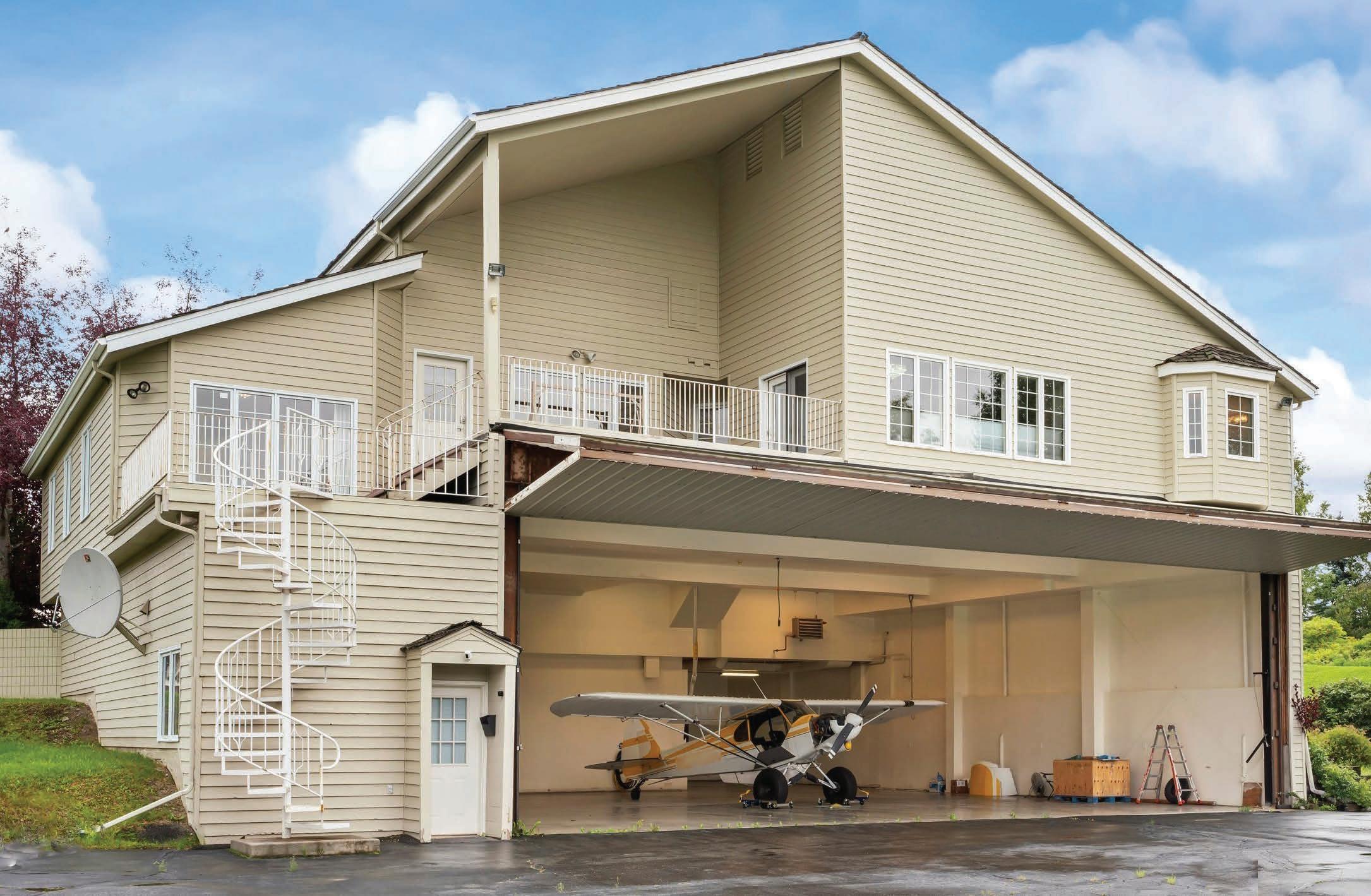 If you are an Alaskan dreaming of landing your amphib Beaver, Super Cub, helicopter, or anything in between, and taxiing into your private 3,000-plus-square-foot hangar, then look no further! Make this home your reality. Walk upstairs to your 5-bedroom ranch home, built for entertaining, and share your stories of the day’s adventures. Part of the Sky Harbor HOA, this property is on a private, maintained dirt/grass strip. Sip your coffee from the covered deck and take in the mountain views. The contemporary layout and ability to store any Alaskan toy will make you the envy of all your pilot friends!