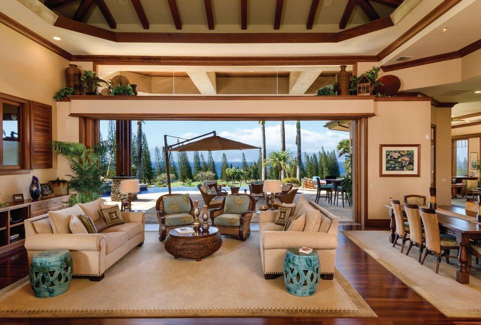 This stunning single-level residence is located in the majestic Plantation Estates of Kapalua, a prime gated community of 2-plus-acre estate sites. Sitting adjacent to the 3rd hole of the world-renowned Plantation Golf Course, home to the PGA’s first tournament each year, the estate offers magnificent ocean and golf course views in a lush setting of mature landscaping. Designed by Jeffrey Long, Long & Associates Architects and Interiors, the residence was built with the highest level of craftsmanship. Seamlessly incorporating indoor and outdoor living spaces, this gracious estate is built on a grand scale. Offered turnkey.