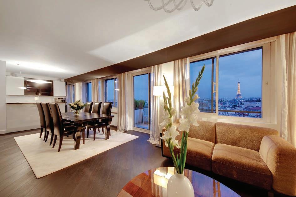 Unique, rare, superb top-floor apartment with terraces, putting Paris at your feet! Completely renovated by a renowned decorator, it fulfills the highest requirements. The living room and dining room prolonged by an open kitchen, 2nd living room, and 3 suites each with a private bath and dressing room.