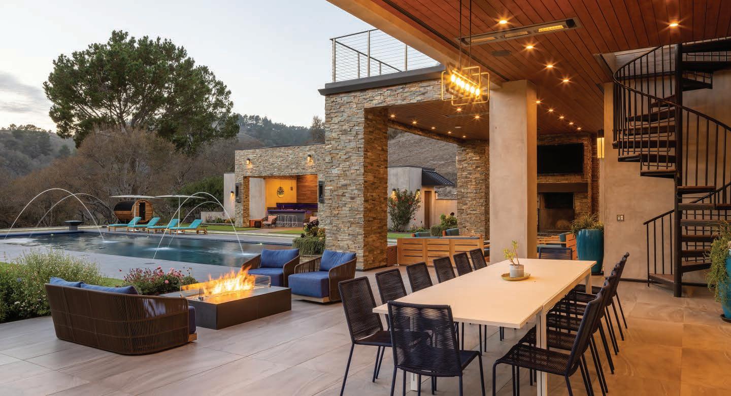 This 6-acre, turnkey gated estate features an impressive list of amenities, including a spacious guesthouse, gourmet kitchen with a large butler’s pantry, outdoor kitchen equipped with a barbecue and custom-built pizza oven, sauna, and oversized heated pool with fountains, fire pits, and colorful lighting. The upper deck overlooks the pool boasting picturesque views of the Santa Lucia mountains. The property offers almost 10,000 square feet of living space and a combined 9-plus-car garage space.