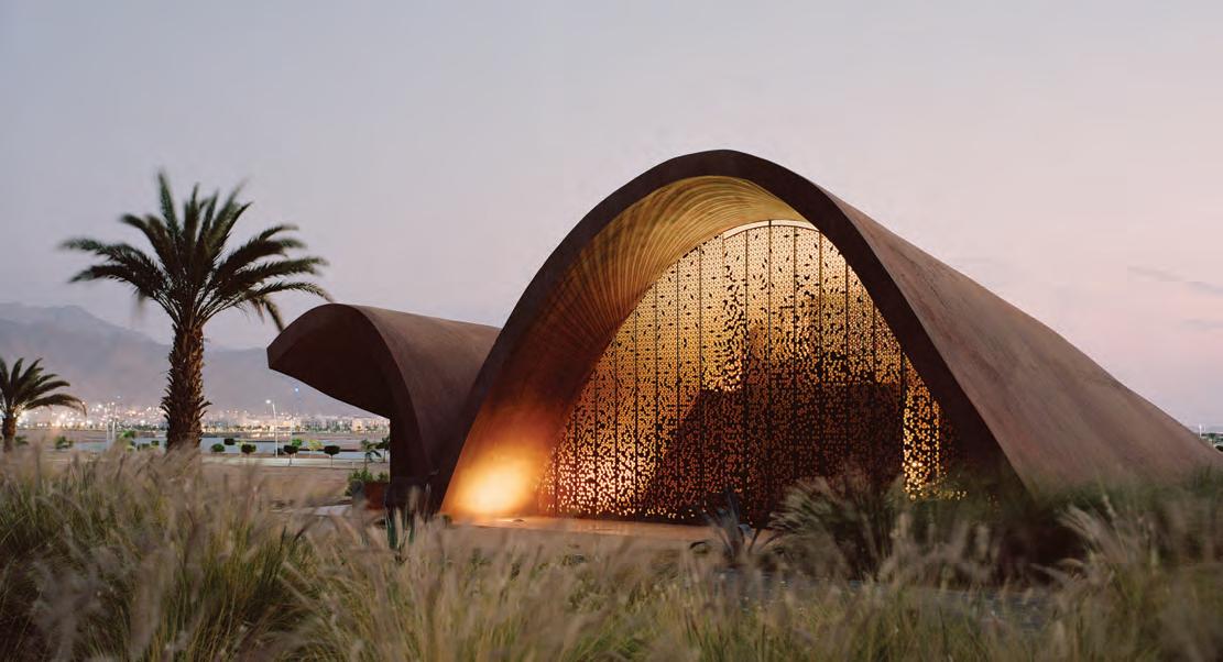 To bring that vision to life, the team collaborated with Ayla Oasis Development Company to design a structure that used local materials, construction techniques, and regional craft traditions. “The scope was to deliver a signature architectural landmark that could meet a broad range of functional, aesthetic, environmental, and construction-related criteria, all while capturing the spirit of the surrounding desert landscape and enhancing Ayla’s role as a major tourism destination,” he adds. The project was completed in 2018.
