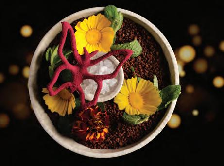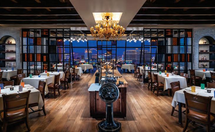 When Las Vegas reinvented itself as a more multidimensional destination, high-end restaurants joined Louis Vuitton boutiques as luxury distractions. With the resources of the world’s largest gaming companies, even the haughtiest Michelin three-star chefs could be lured from the streets of Paris to Sin City. Those resources also result in extravagant, over-thetop restaurant décor, a Las Vegas trademark. Kiko Miyasato, a prominent local journalist and editor at Las Vegas Magazine, reports the influx of famous chefs, which began with Wolfgang Puck in 1992, continues unabated. “Las Vegas has become a mecca for celebrity chefs, and we now rival any city in the world when it comes to dining.” A more recent trend identified by the writer is the growing accommodation of vegan diners in a meat-and-potatoes town. “Veganism has become huge, and even some steakhouses offer separate vegan menus,” says Miyasato.