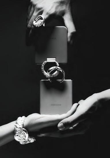Beyond direct integration, fashion can be used to supplement already existing technology, such as smartphones. A Sweden-based jewelry brand, Louis Abel, teamed up with Samsung to create beautiful phone cases for their Galaxy flip phone line, which have stunning sterling silver interlocked rings to admire. Jimmy Loutfi, the founder of Louis Abel, says about this collaboration, “We treated the case as a piece of jewelry rather than just an accessory. It had to be functional but also express our design language — organic shapes, textured surfaces, and a strong material presence. The rings are central — they’re not decorative, they carry meaning.” That meaning is informed by the Korean concept of “Inyeon,” which Loutfi explains is “the idea that some connections are meant to happen.” In this instance, that connection is the fusion of the worlds of fashion and technology, and it gives the unique accessory a much deeper meaning.