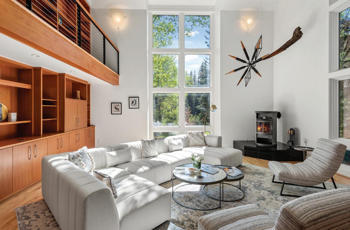 warmth and comfort. The main-level living spaces seamlessly integrate with the outdoors via expansive sliding glass doors. All of these elements graciously harmonize to create a welcoming and tranquil ambiance.