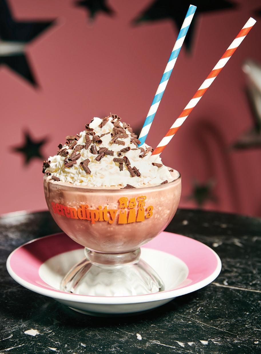 Menu items such as the iconic Frrrozen Hot Chocolate — a secret blend of 14 exotic cocoas — draw people from all over the world for a sip of its creamy, dreamy, icy goodness. The Quintessential Grilled Cheese Sandwich is celebrated as the most expensive grilled cheese, and the LUXE Milkshake with 23-karat edible gold and Devonshire luxury clotted cream, was deemed one of the most opulent milkshakes in the world.