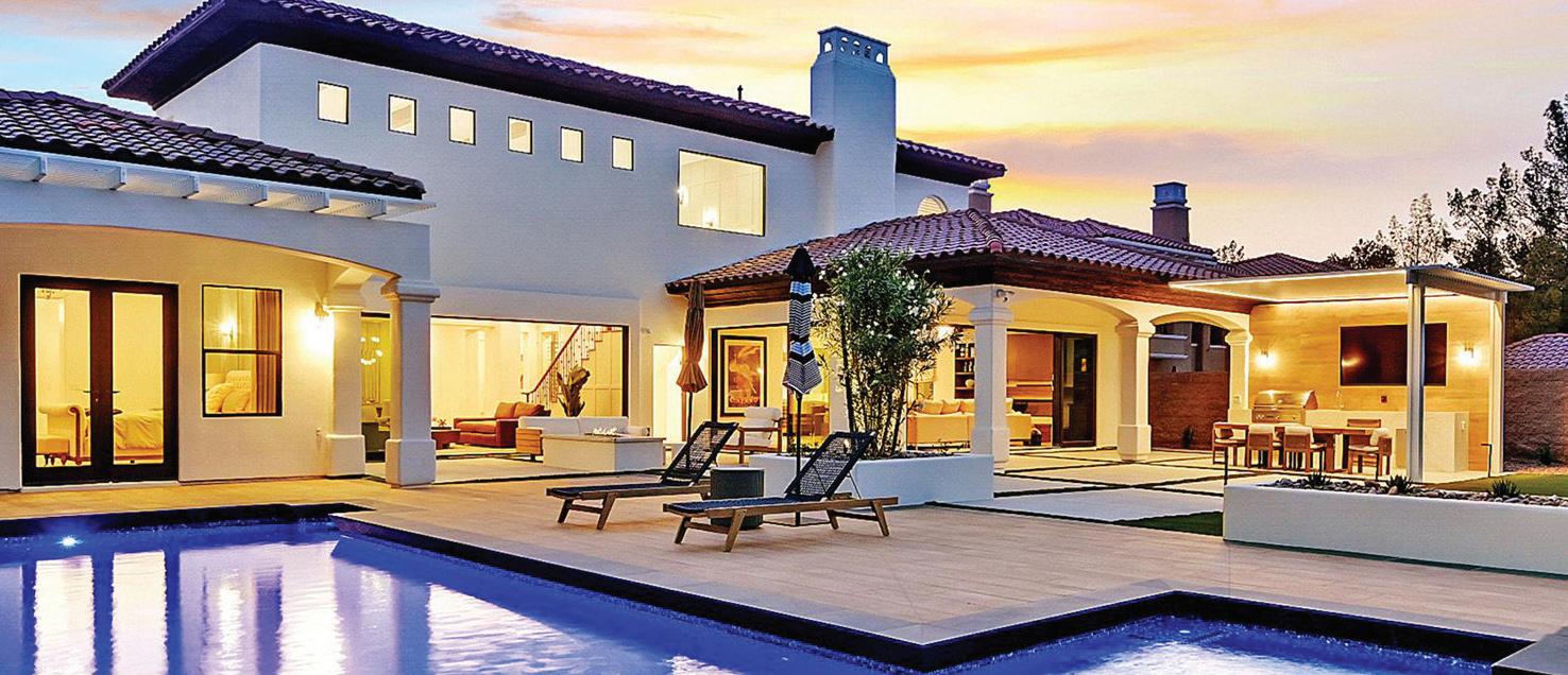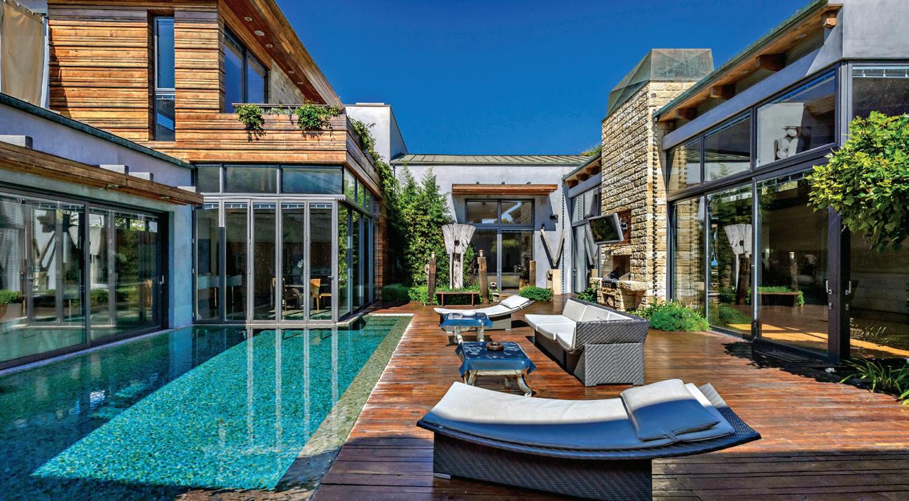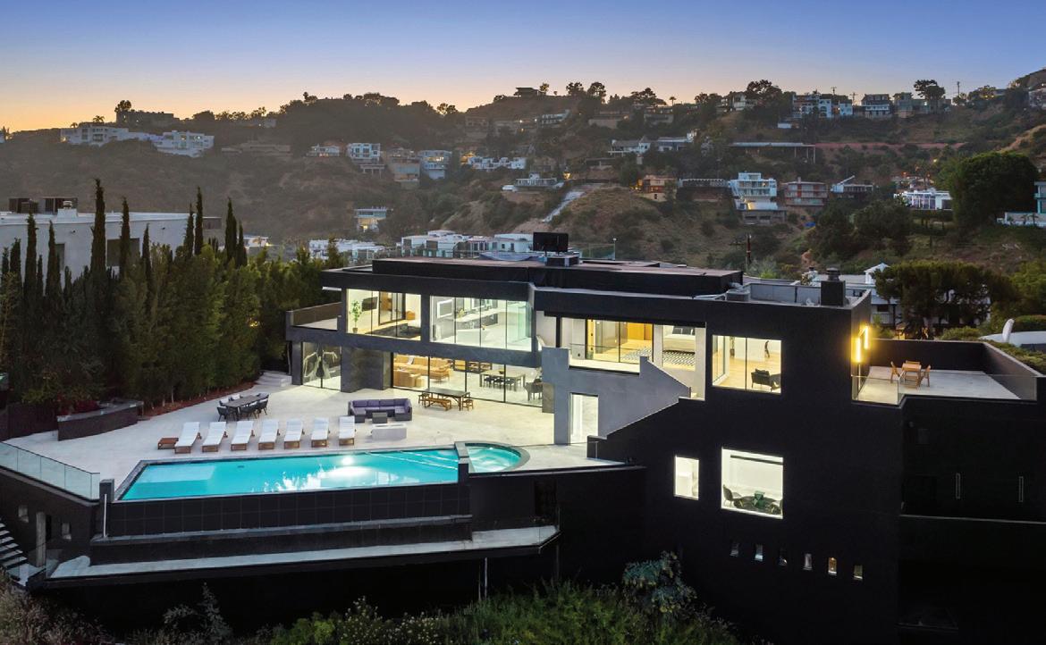 Impeccable Sunset Strip modern home with unobstructed views, minutes from storied L.A. nightlife and tucked away on a 4-home private drive directly off of Sunset Plaza. Enter to a grand main level with sliding walls of glass and a family room with a walllength fireplace and glass wine cabinet. Fully remodeled from the ground up with imported stone, custom appliances and fixtures, this is an entertainer’s paradise. Four en suite bedrooms, 5 baths, a chef’s kitchen, home theater and more. Enjoy the 1,000-square-foot rooftop deck with a luxurious outdoor kitchen and take in the lights of L.A. The sprawling outdoor area boasts an oversized infinity pool and spa, as well as a wet bar and outdoor TV, all backdropped by jetliner views stretching from downtown L.A. to Catalina Island. www.1924sunsetplazadr.com