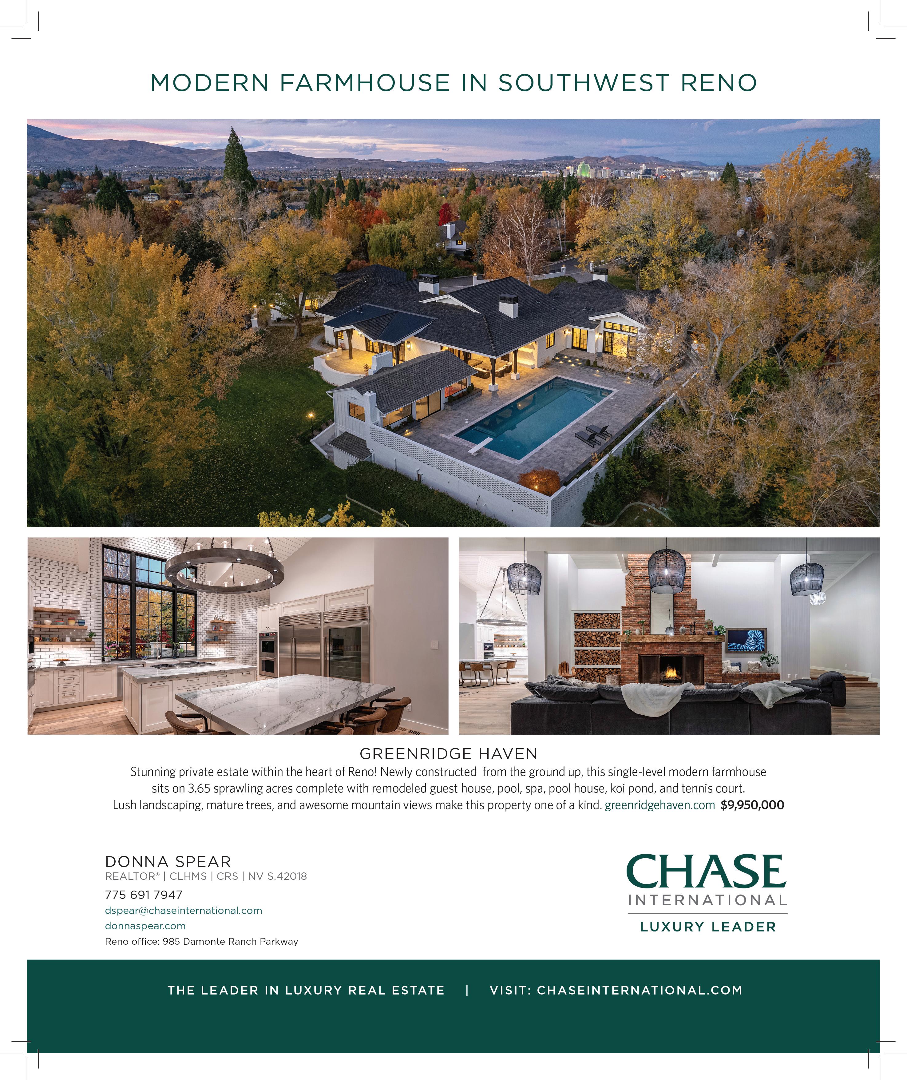 Finally, let’s talk about our cover home. With its own 46-seat movie theater, an authentic tiki bar, arcade, putting green and fitness center, this is truly a resort unto itself. All this modern luxury is juxtaposed with the charm and prestige of its exceptional 100-yearold residence. To tour Knoll House, see pages 13-15.