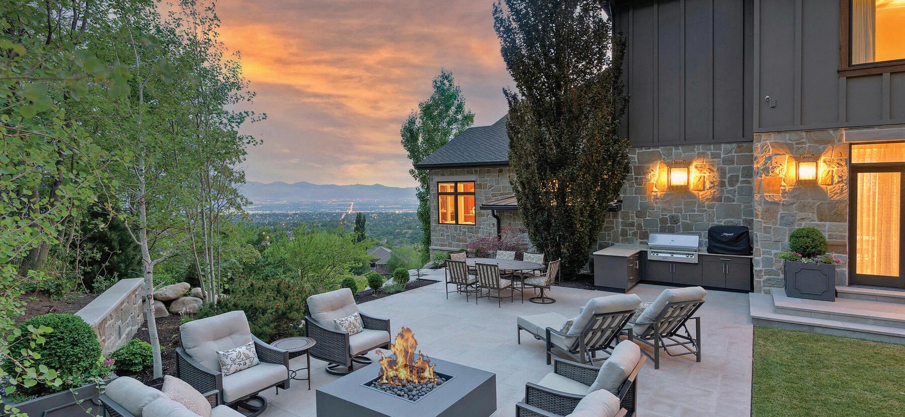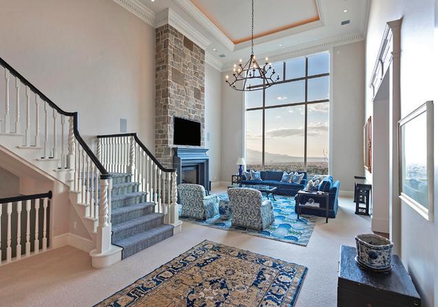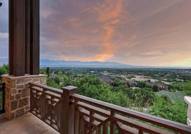 Front mountains with breathtaking and unparalleled panoramic views of the city, valley, lake and mountains. This architectural masterpiece is situated only minutes from several world class ski resorts, Salt Lake International Airport, entertainment and theaters, hiking and biking trails and renowned medical facilities. Featuring soaring two-story beamed ceilings, skylights, massive windows and fireplace, huge main floor primary bedroom suite, guest apartment, three kitchens, movie theater, indoor sports court and separate weight room that would put commercial gyms to shame. O ering privacy and seclusion on a rare, double lot with flat backyard, meticulous landscaping, oversized flagstone patio and outdoor kitchen.