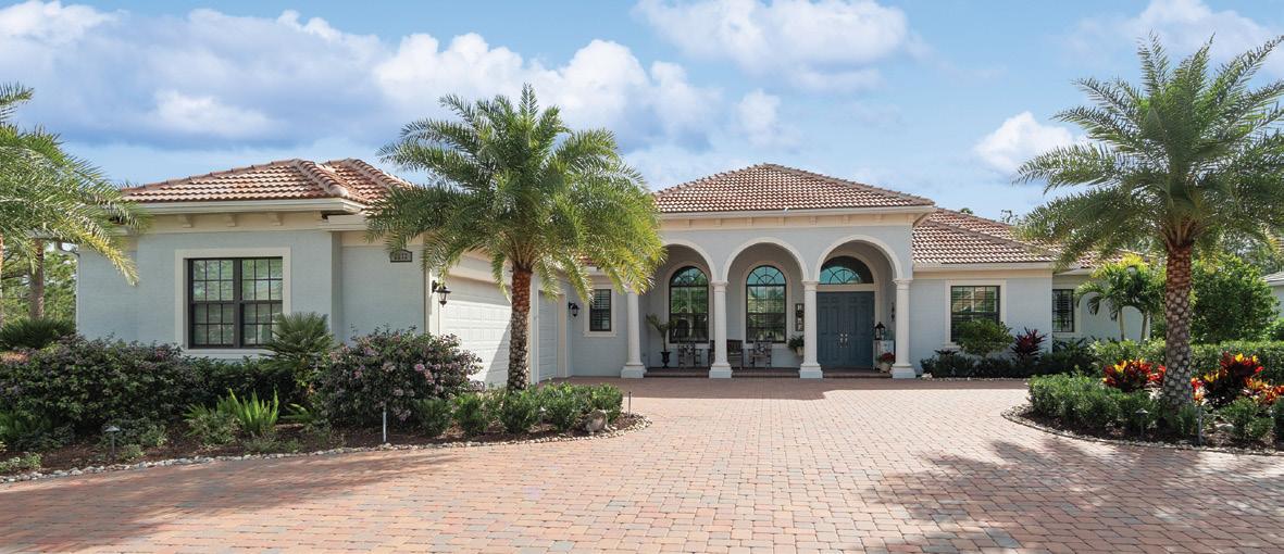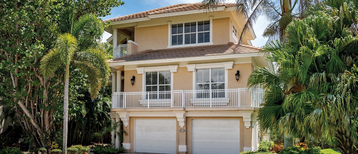 This brand-new waterfront home features 5,424 square feet of living space, 4 bedrooms, 4.5 baths, an elevator, an infinity-edge pool, mature landscaping, and breathtaking water views. The shared dock comes with a lift and is in a no-wake zone, making it easy to explore the azure waters of the Gulf Coast.