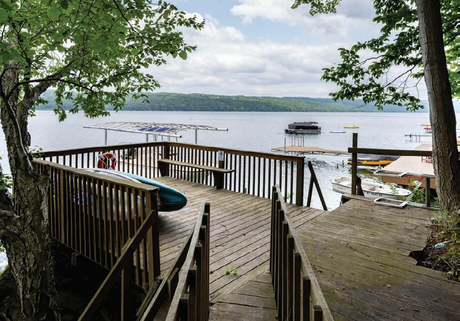 Private Lodge on this 17-acre estate on the shores of Skaneateles Lake. Enjoy unparalleled privacy and tranquility while still being within easy reach of the charming village of Skaneateles with its upscale shops and restaurants. This meticulously designed 5-bedroom, 6-bath compound offers the perfect blend of luxury, comfort, and natural beauty. The heart of the home boasts a gourmet kitchen featuring top-of-the-line appliances, custom cabinetry, and a large center island perfect for culinary creations and entertaining. The primary suite features panoramic lake views, a spa-like en suite bath, and direct access to the outdoor balcony, where you can soak in the tranquility of the surroundings. $4,950,000