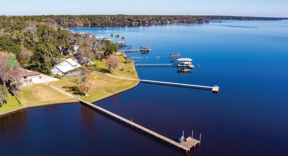 13.19 +/- Acres on Lake Weir with 300 feet of water frontage. Two-story home includes 2 bedroom, 2 bathroom plus bonus room for use of your choice. Modern gourmet kitchen and maple hardwood floors. Detached 12’ x 10’ workshop. 200’ ft of boardwalk and dock.