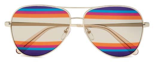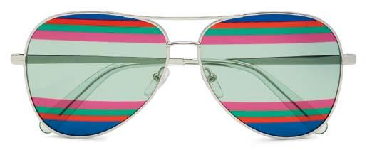 Innovative in both material and shape, it was designed by Salvatore Ferragamo for American actress Judy Garland in a bold array of colours. Although it was a far cry from the linear style of the 1940s, the shoe quickly became a must-have which encapsulated Ferragamo’s extraordinary talent for combining colour and cutting-edge design. The new “Rainbow” sunglasses draw on graphic design and extensive production techniques, pairing an aviator frame with bold, special “tattoo” style lenses which feature a digitally printed, full-colour horizontal design. The rich colour palette includes four variations in daring tones, featuring different patterns, taking the design to the next level. The Shiny Silver/Mint and Shiny Gold/Antique Rose versions have stripes on both the upper and lower parts of the lenses, while the Shiny Silver/Azure and Shiny Gold/ Petrol versions only have stripes on the upper part – with a special lens gradient treatment applied back to front, from dark at the bottom to light at the top. With “Rainbow,” Ferragamo Eyewear is writing the next chapter in a unique story that merges expertise, creativity and memory.