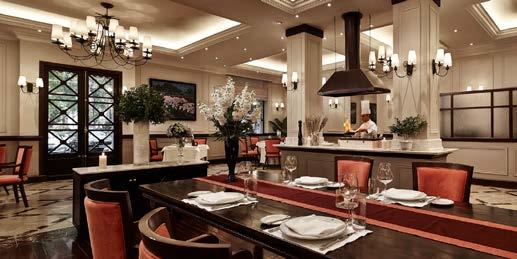In the kitchens, guests can enjoy a surprise menu created by the Chef and savour at it the heart of the action at the Chef’s table.