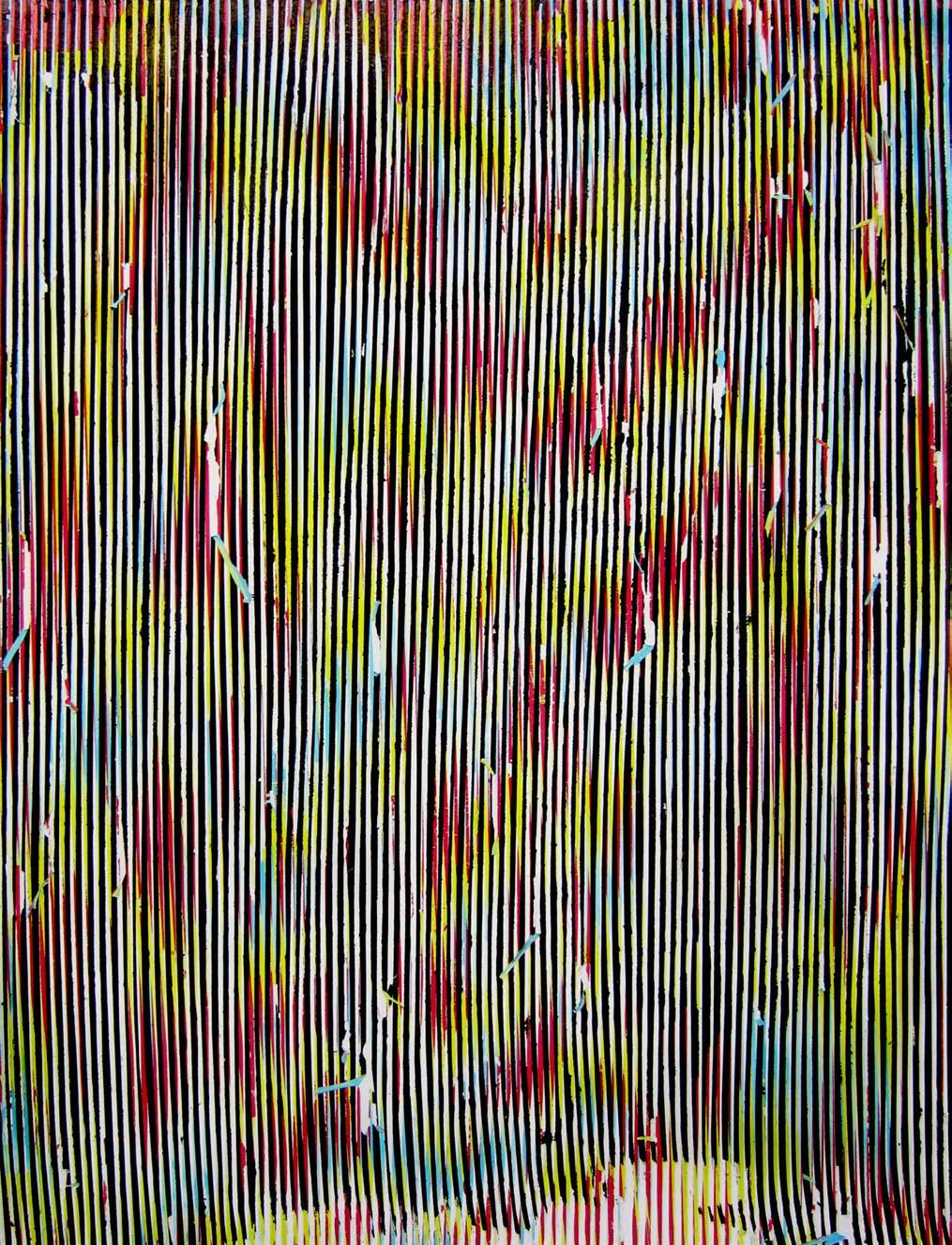In marked contrast to Haut de Gamme’s energetic, apparently extrovert style, showing canvases splashed with wild and explosive bursts of rich colour and splattered paint specs, Hall himself is an artist who treasures his privacy and lives quietly above his studio in a secluded west London mews.