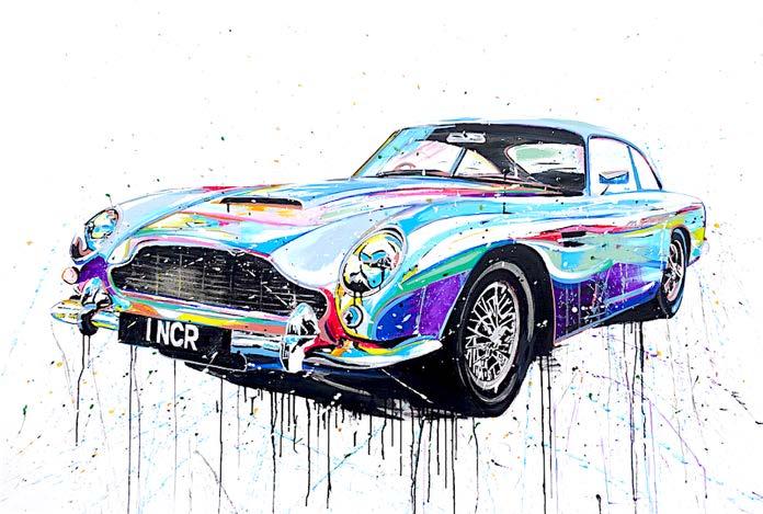 Alex Hall, 27, is now regarded as one of Britain’s most promising home-grown and talented emerging contemporary pop artists. His collection, or brand, ‘Haut de Gamme’, (translated from the French: “Top of the range”), is a celebration of colour, form and technique and depicts racing cars, wild safari animals and his signature image, magnum bottles of champagne.