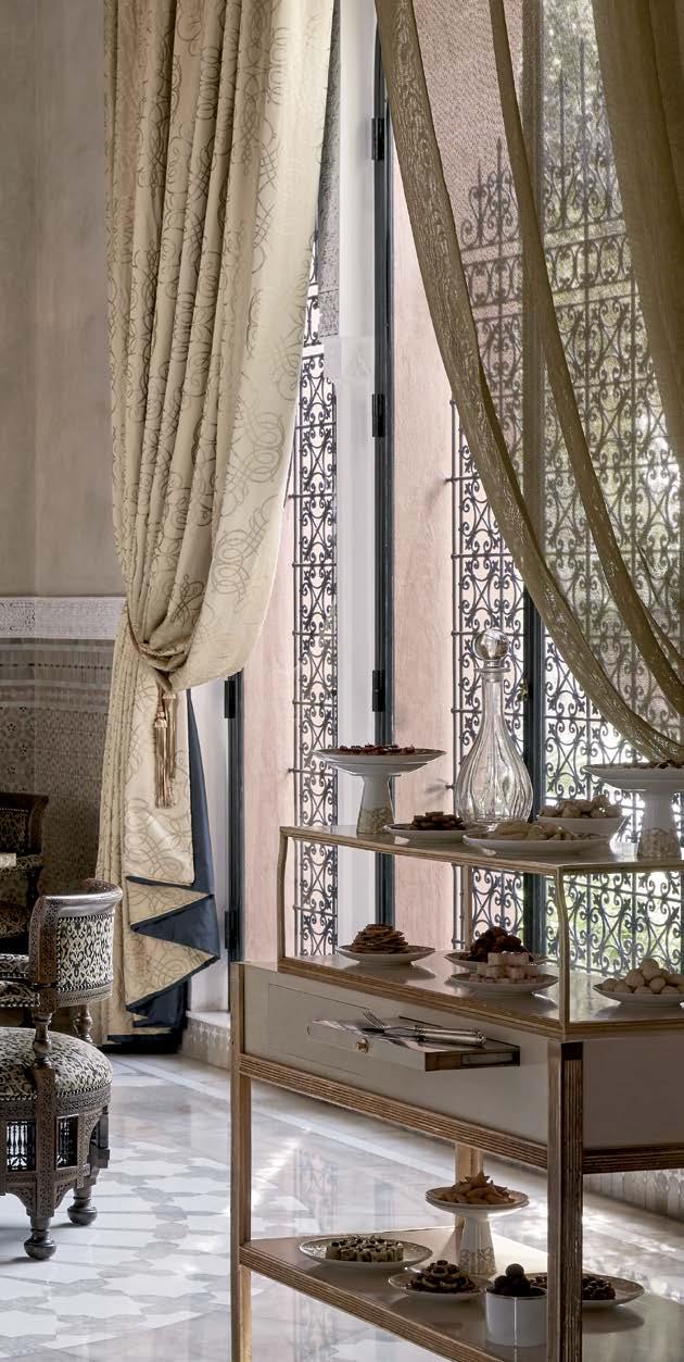 Rather than corridors, the Royal Mansour Marrakech Riads are connected by pathways within a private medina, where shrubs and flowers border the alleyways, and gardens bloom in inner courtyards. The landscape architect, Luis Vallejo, wanted to create a sophisticated tribute to the Moroccan art of living. Orange trees, honeysuckle, jasmine and roses perfume the gardens … a scent of Morocco.