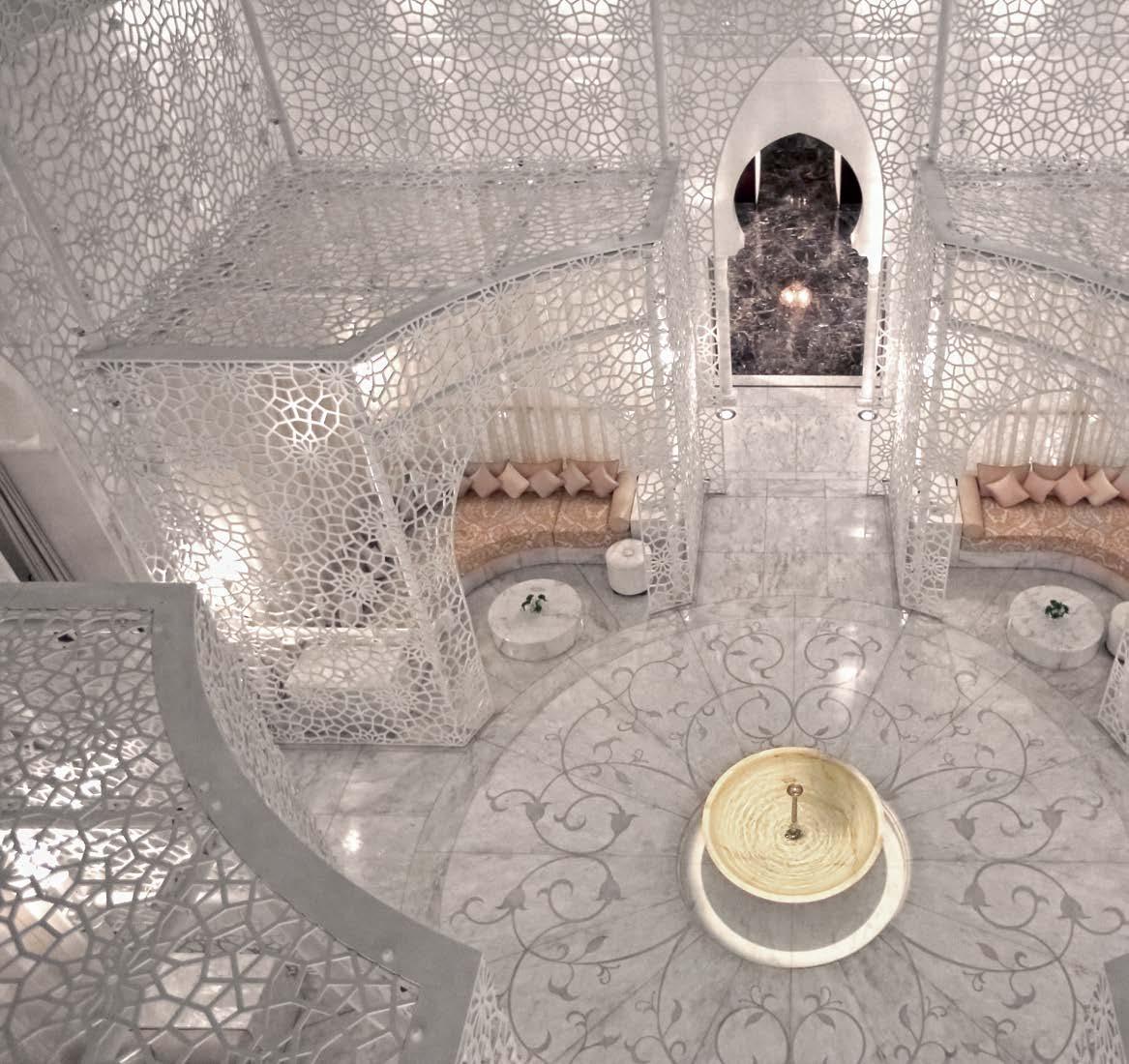 A peaceful haven bathed in natural light, the Royal Mansour Spa is set in an impressive glazed pavilion and houses 13 treatment rooms, including three private spa suites. Spa treatments range from ancient rituals using all-natural Moroccan marocMaroc products to the latest advances in anti-aging facials from Sisley and Dr Hauschka plus the range of “Révérence de Bastien” products for feet, nails and hands care. At the heart of the spa, an authentic hammam provides guests with a signature bathing ritual to revitalize the body and soul. A manicure and pedicure suite is also available, along with a hair salon offering a full range of treatments from Leonor Greyl. Facilities also include an indoor swimming pool, Watsu bath area and fitness center.