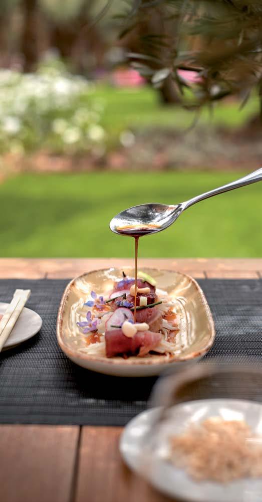 For La Grande Table Française, chefs deploy the best Moroccan produce to bring a touch of the south to the French gastronomic ideal. For example, since we are in Marrakech, rather than Paris, the wine element of a sauce might be replaced by verjus made with grapes, citrus or tomato. Expect sun-soaked yet balanced cooking of great refinement, which extends to the elegance of the decor, porcelain, glassware and silverware…