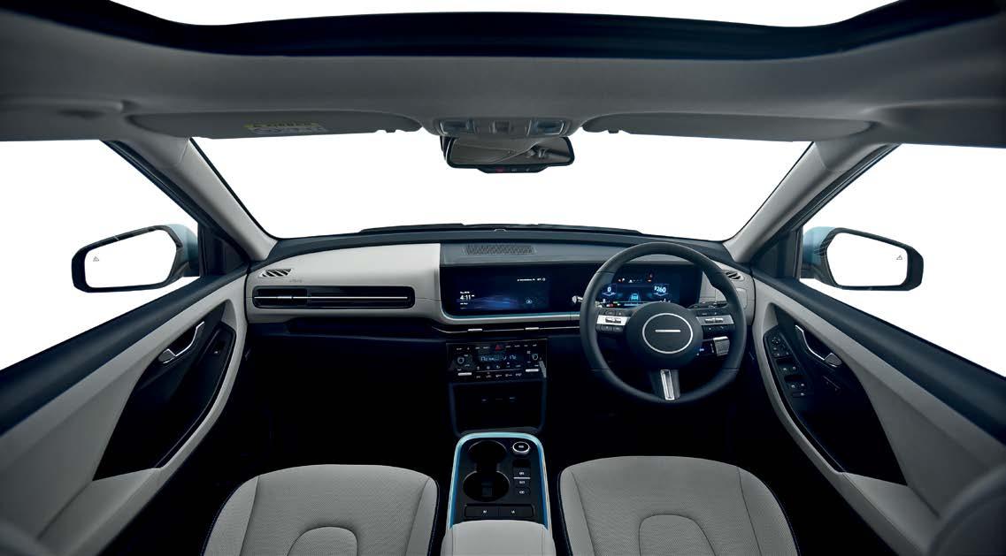 of the fossil fuel-powered car’s monocoque and not a completely new, dedicated EV platform that maximises space and efficiency. If you like your glass full, we are happy to report that the Creta is already a spacious SUV and you’ll not be left wanting for any more space. The interior is spacious, the boot remains unchanged and this EV version even gets some extra storage space in the front