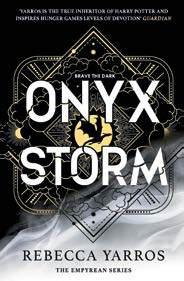 Rebecca Yarros once again delivers a captivating adventure with Onyx Storm, the third installment of the Empyrean series. Violet Sorrengail's journey beyond the Aretian wards brings gripping tension as she fights to protect her homeland, dragons, and her beloved Xaden. Yarros masterfully balances pulse-pounding action with emotional depth, drawing readers deeper into this enchanting world. The introduction of new alliances and high-stakes battles keeps the plot fresh and engaging. Though Onyx Storm may not surpass the magic of Fourth Wing, it holds its own with vivid world-building, sizzling romance, and powerful character development. Fans of the series will appreciate its role in setting the stage for future stories. Yarros' signature blend of passion and peril ensures this novel is a must-read for fantasy lovers.