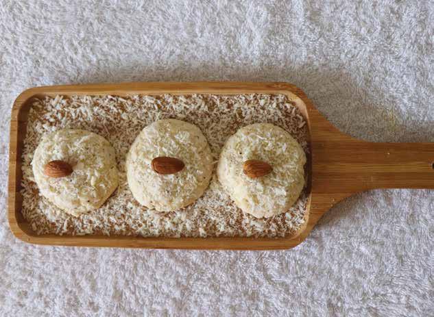 In a pan, mix the maida, and baking powder. Mix all the dry ingredients well. Add some oil into the mix and knead well. Shape it in to small balls. Roll these balls in desiccated coconut, and flatten them a little bit. Bake in a preheated oven at 170degree for about 13 to 15 minutes.