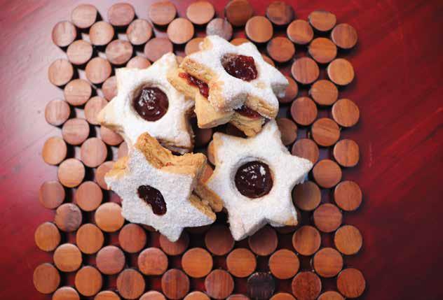Mix maida, almond powder and salt in a pan. Cream the butter and icing sugar. Add the egg yolk and essence to it. Beat it well. Fold the maida. Roll into 1/4 inch sheet and cut with a cutter. Cut the centre of half of the cookies with a small round cutter. Bake it at 190 degree for 15 minutes. Let it cool. Spread jam on the whole cookies. Dust the icing sugar on the ring cookies, and sandwich the cookies with jam.