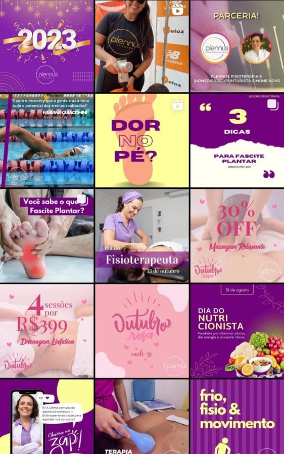 Cardsou vídeos parao feed, vídeos para os stories Dicas, curiosidadese informaçõesgerais do universoda fisioterapia