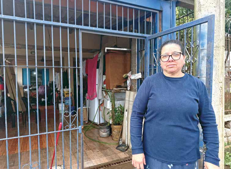 camos debaixo de sol e chuva, sem comer, ajudando a limpar. Peguei pneumonia, machuquei os joelhos, e uma outra moradora cortou o pé, mas não desistimos”. O esforço do grupo que contava com cerca de 20 pessoas da comunidade garantiu que a limpeza fosse concluída, deixando todas as ruas da área organizadas. A estimativa de Caroline é que a equipe contratada tenha trabalhado mais de 20 dias após a mobilização. “Deixaram todas as ruas, becos e vielas limpas, tudo ficou bem organizado”, relata. Caroline, que tem seu salão de beleza no bairro desde 2011, também compartilhou como sua vida pessoal foi impactada pela enchente. “Perdi tudo em casa e no salão, mas já estou conseguindo me reerguer. Em 2020 também perdi tudo por conta de outro evento trágico, e agora, mais uma vez, tive que começar do zero”. A profissional expressou alívio e gratidão ao compartilhar que, apesar das dificuldades enfrentadas, já conseguiu organizar sua casa e retomar o funcionamento do salão de beleza.