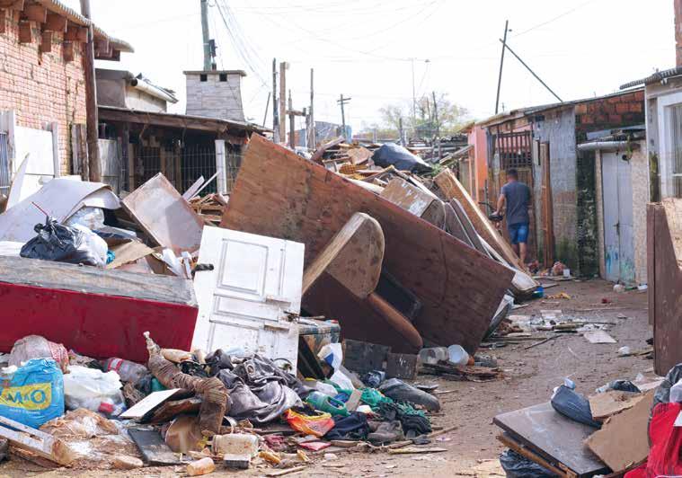 A enchente deixou um rastro de destruição e uma quantidade imensa de resíduos, com as áreas secundárias sendo as mais afetadas pela demora na limpeza. O entulho nas ruas menores chegou a mais de dois metros de altura e se estendia por um comprimento que parecia interminável, provocando indignação nos moradores e criando um cenário de precariedade e risco à saúde pública.