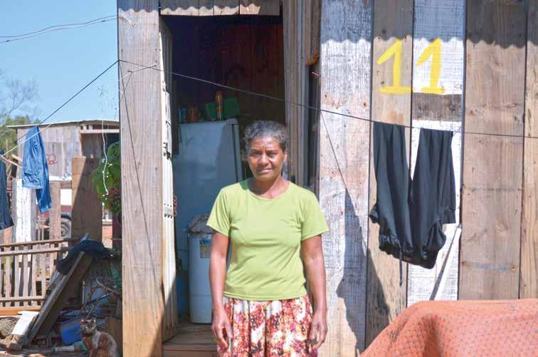 ganho R$ 700, R$ 900”, afirma. Outros moradores vivem dilemas parecidos. Vanderlei Roque de Lorena estava preso durante a enchente e, ao retornar, não tinha mais nada. Tentou reconstruir sua vida improvisando uma casa, mas precisou recorrer a um “gato” para ter energia elétrica – o que acabou provocando um curto-circuito e, consequentemente, um incêndio. Hoje, ele vive de favor na casa de