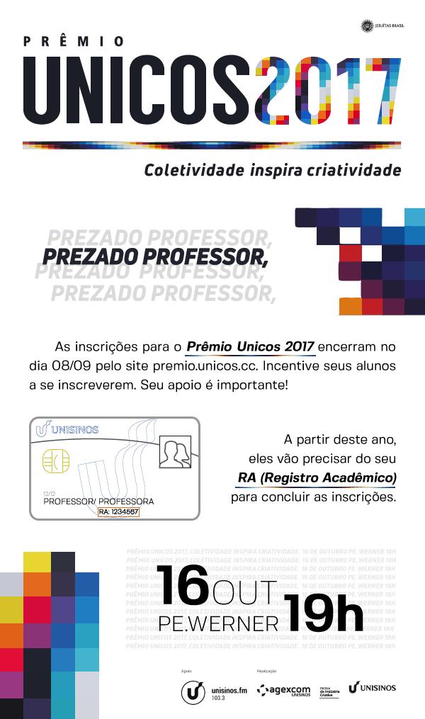 - Telão principal: logo animado do Prêmio Unicos 2017