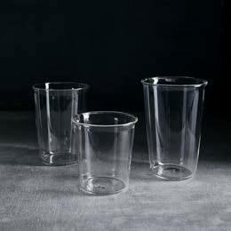 Rye Glasses and Tumblers feature graphic shapes with a subtle accent of opaque white glass at the base. Each lightweight, durable vessel includes a step detail that allows for seamless stacking.