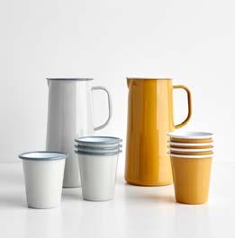 FALCON ENAMELWARE Tumbler $12.50 each 3 Pint Pitcher $55 Oyster Gray or Mustard.