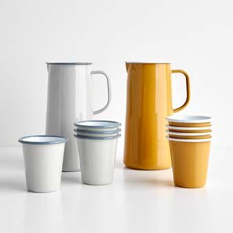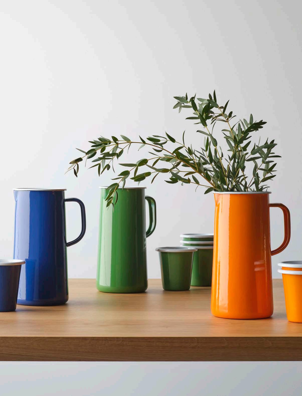 Falcon Enamelware has been a staple of British home life since the 1920s, first known for its classic ice-white design with a distinctive blue rim. In 2011, the collection was revitalized with new colorways and expanded to include bakeware. Today, they’ve introduced three nature-inspired shades—Mineral Blue, Chive, and Tangerine—available in the classic 3-Pint Pitcher and Tumbler. Crafted from heavygauge steel with a durable porcelain coating, these versatile pieces are built to last for generations.