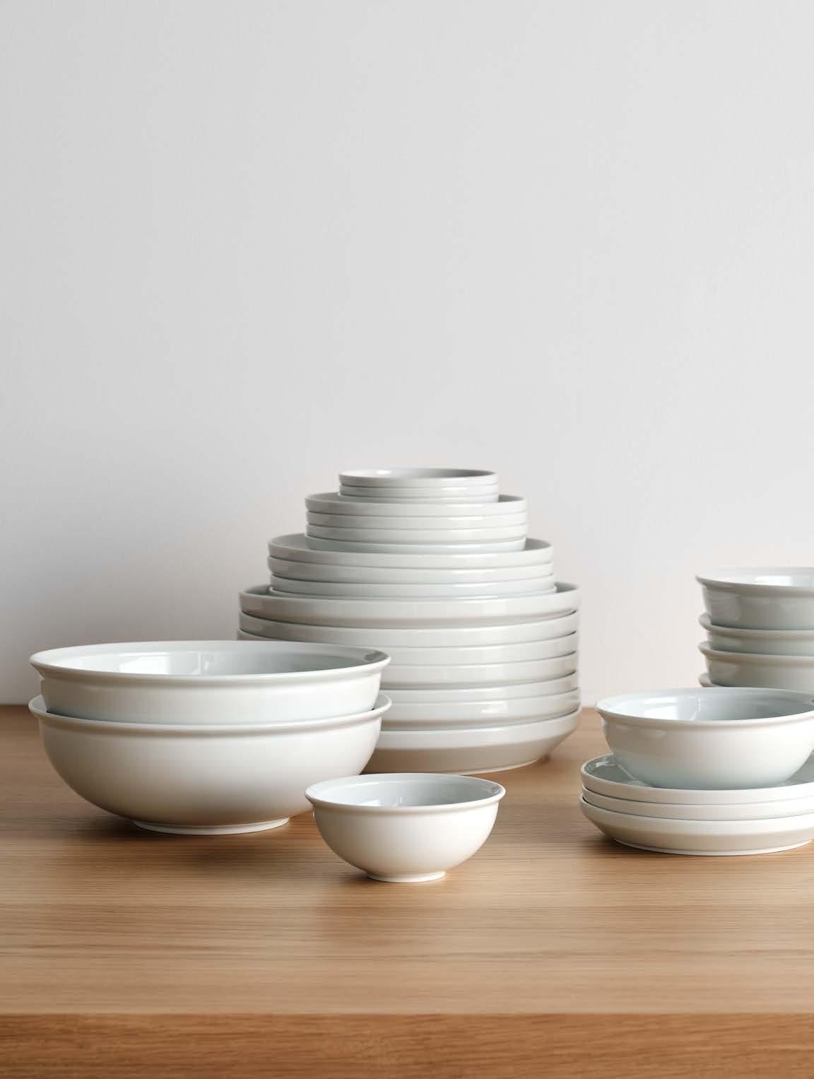 The Rim Dinnerware collection is crafted in a region of Japan renowned for producing some of the world's finest porcelain. With a glossy, warm white finish, these stackable bowls and plates reflect simple, timeless designs with softly angled rims.