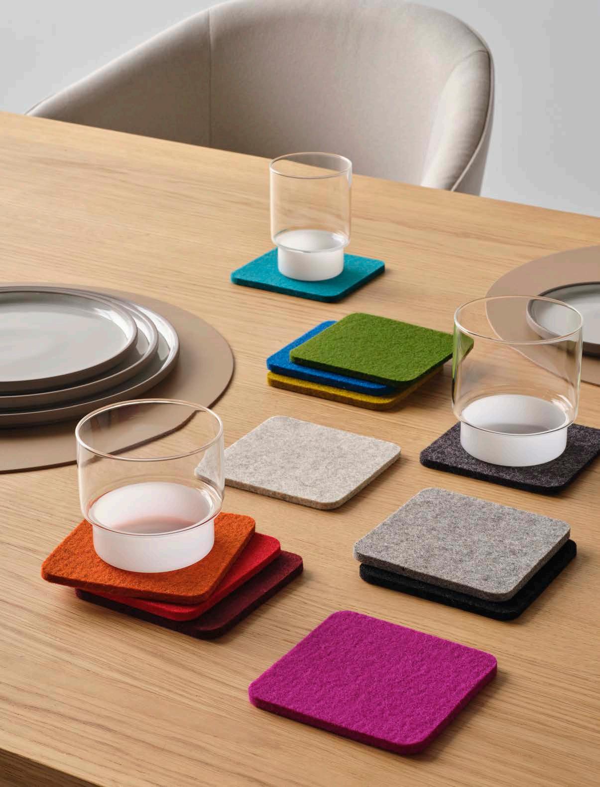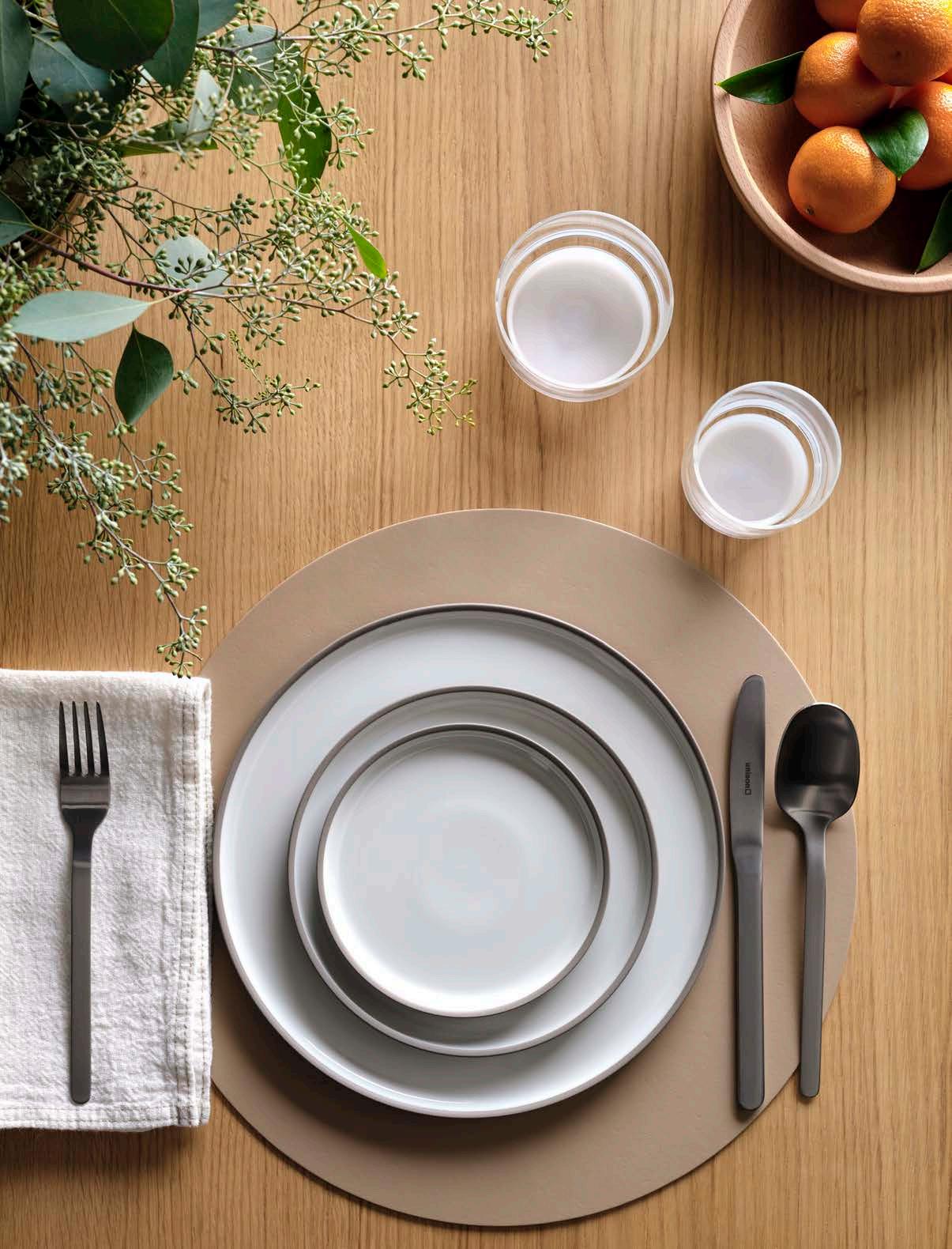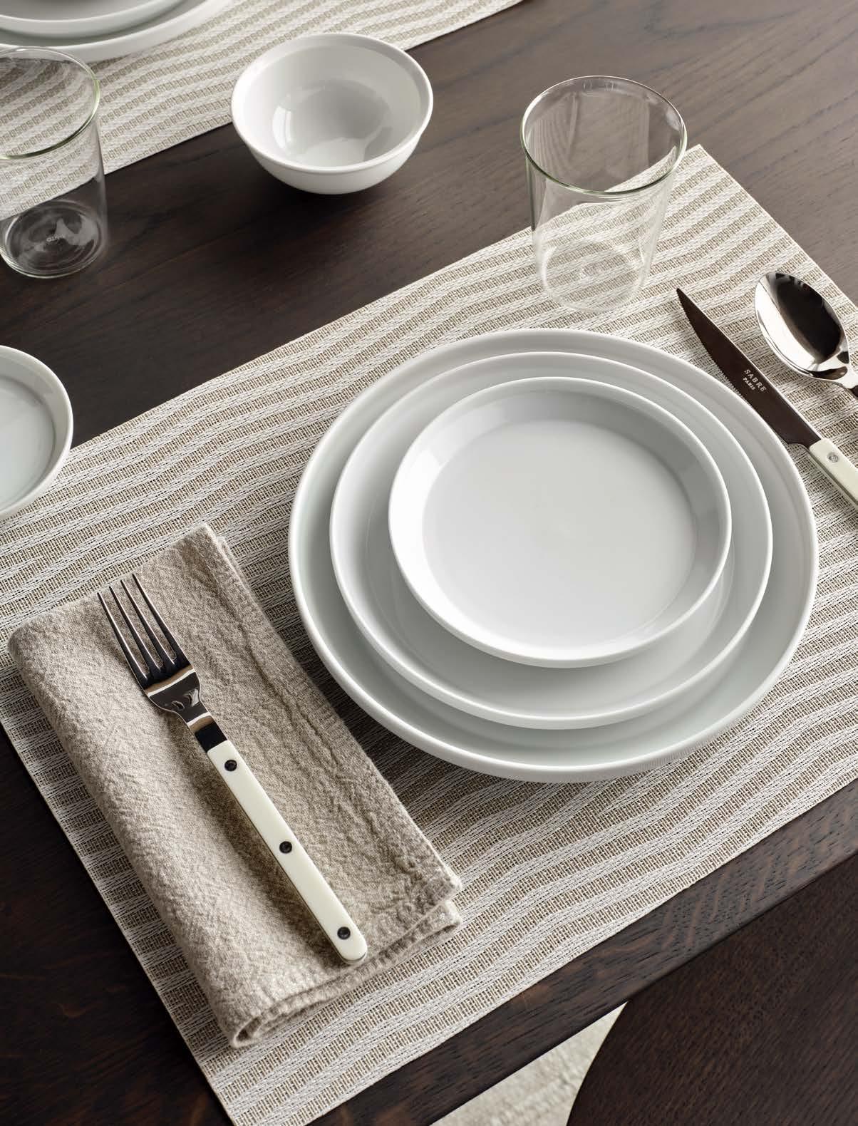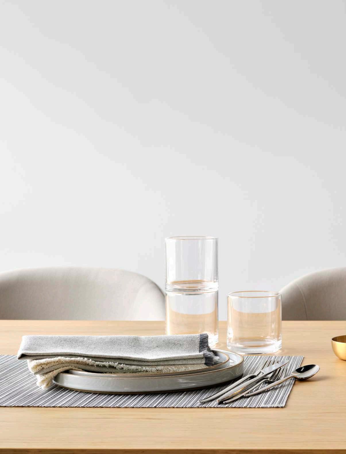 The angled stripes in softly contrasting tones in Chilewich’s Dune Placemats create a resemblance to lines etched in sand. The design uses multiple weave heights to achieve an especially tactile surface.