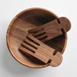 Smooth, solid and substantial, the JBrody & Co Walnut Salad Bowl is a beautiful centerpiece for a meal or countertop. Use the coordinating Walnut Salad Hands to gently toss and serve.