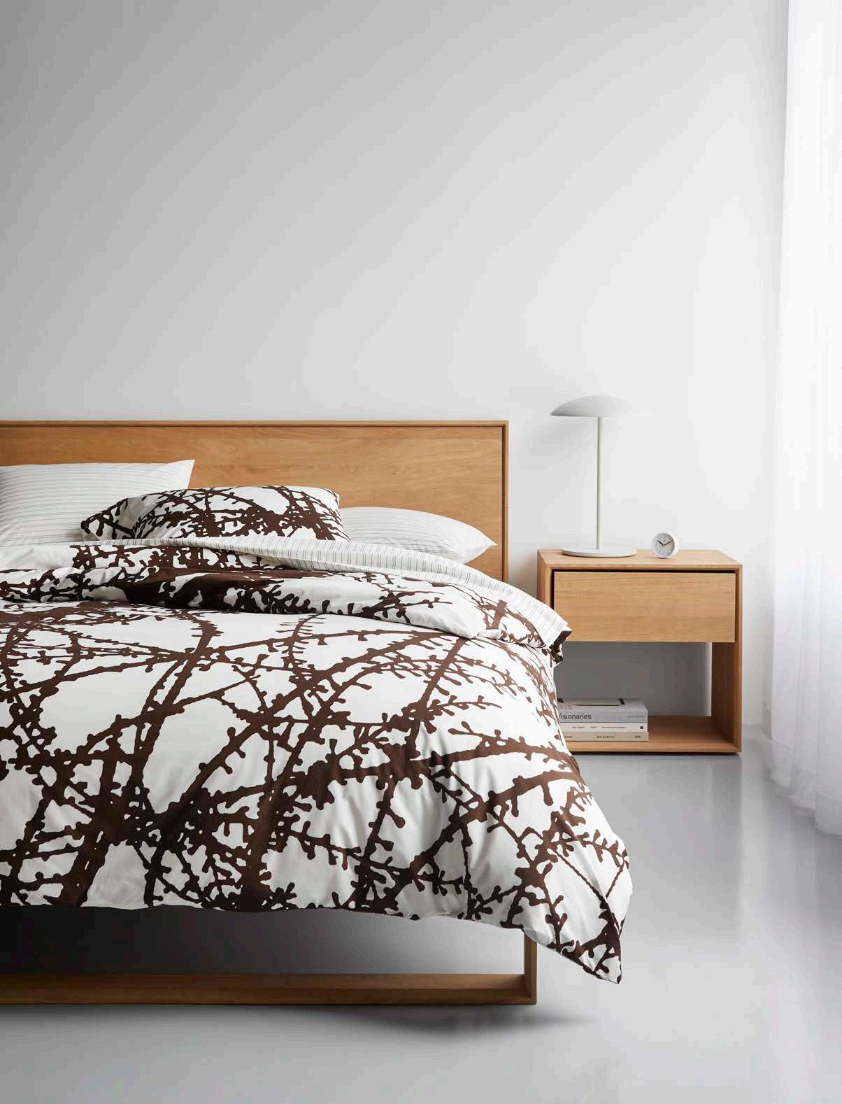 Inspired by a photograph of a tamarack larch tree originally taken by Unison co-founder Alicia Segal, the Larch Bedding Collection features organic motifs digitally printed on crisp, 100% cotton percale.