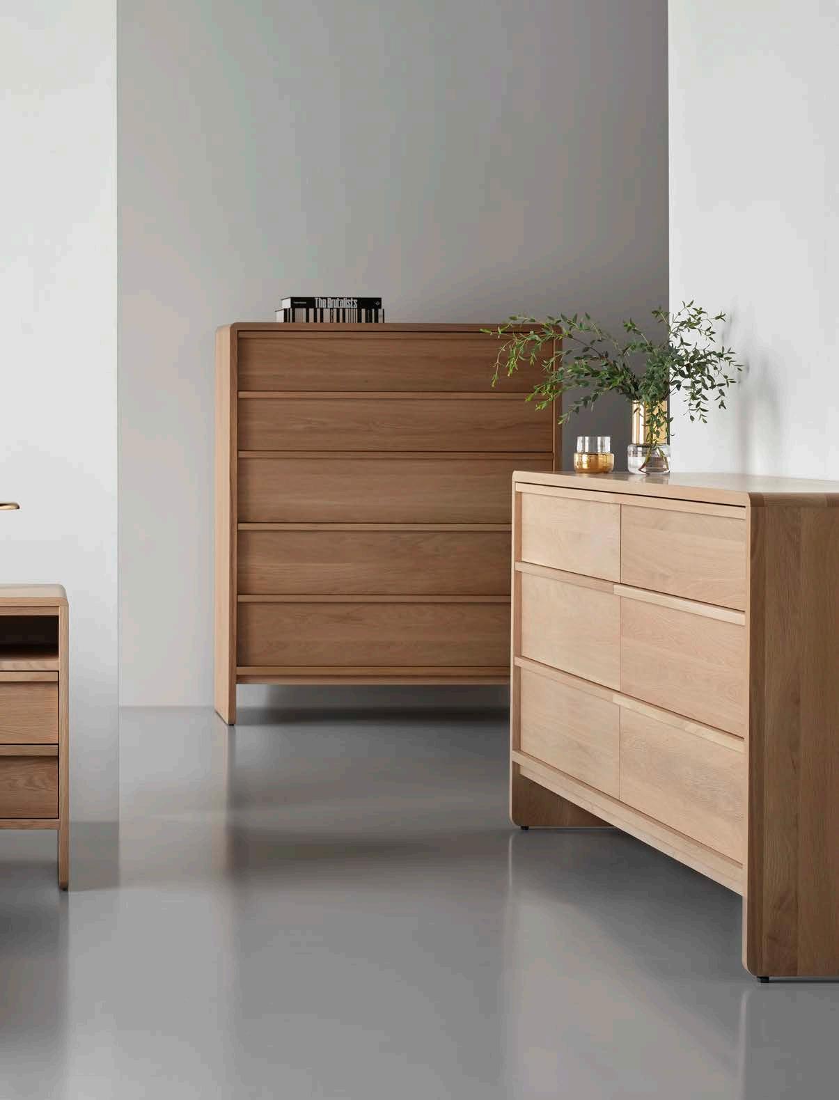 Expertly crafted from sustainably harvested white oak, the smooth, rounded corners of the Corsa Bedroom Furniture Collection bring a sense of serenity to the bedroom.