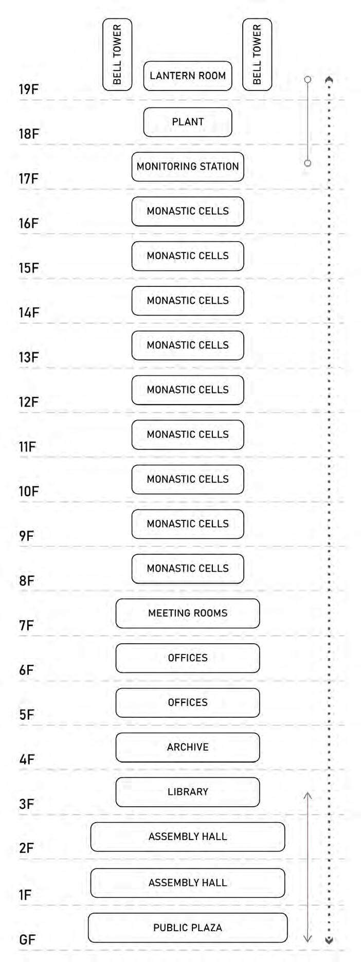 PERFORMANCE 20F - Lantern Room 13F - Monastic Cell 7F - Office 19F - Plant 12F - Monastic Cell 6F - Office 17F - Monastic Cell 11F - Monastic Cell 3F - Lounge 16F - Monastic Cell 10F - Monastic Cell 2F -