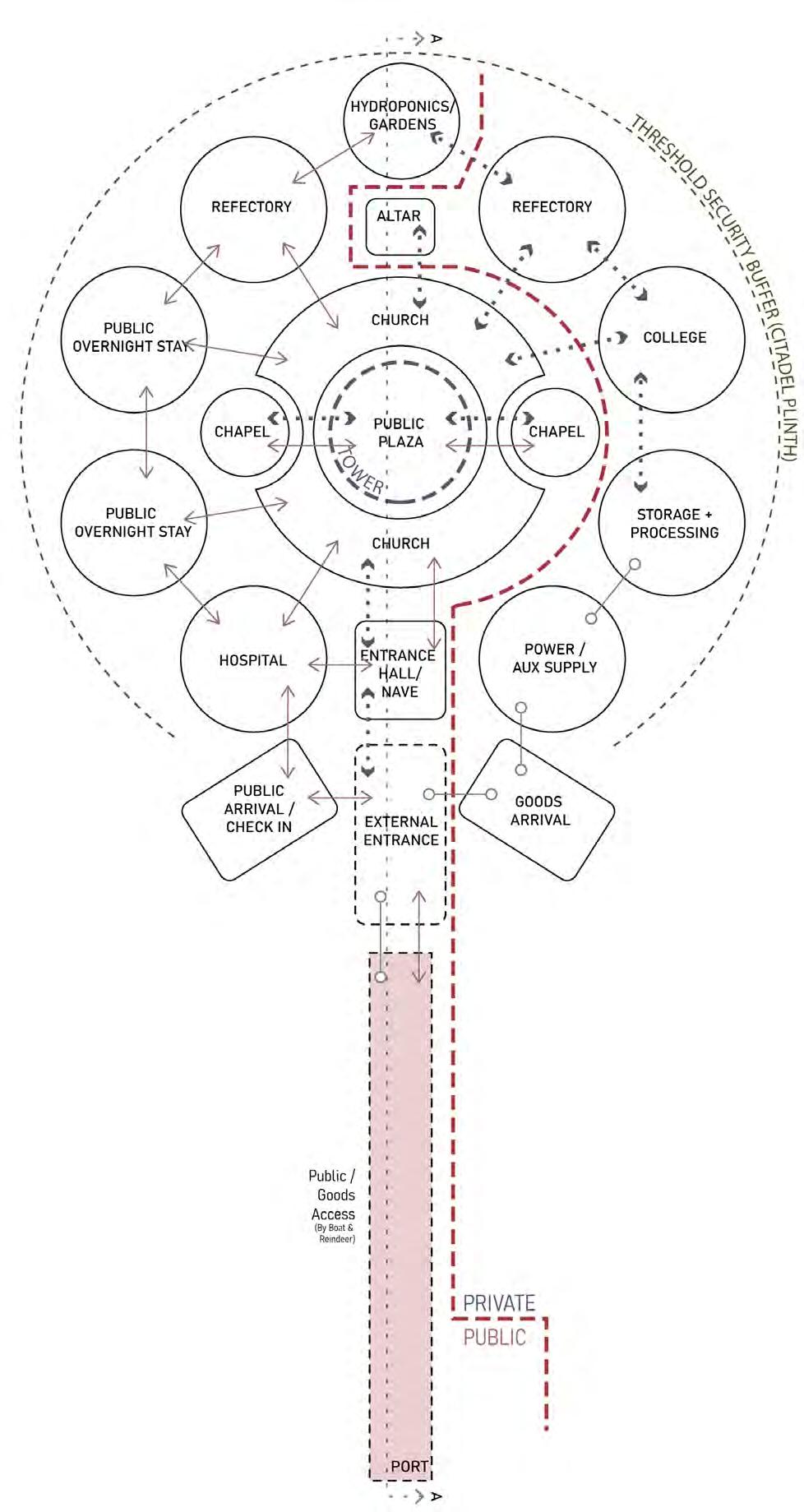 For prosperity to be achieved, this project proposes the region of Yamalo-Nenets to break away from the Russian Federation that has so far hindered its progression. Through architectural intervention, a new administrative building will be conceived as the central body for self-autonomy. This will be based off the historically successful orthodox cloister, a form of religious governance that ruled swathes of Russian land since the thirteenth century. The region of Yamalo Nenets has been chosen for its population of mostly Russian Orthodox believers, a demographic that will have greater potential of success in religious governance.
