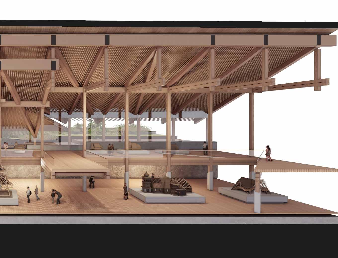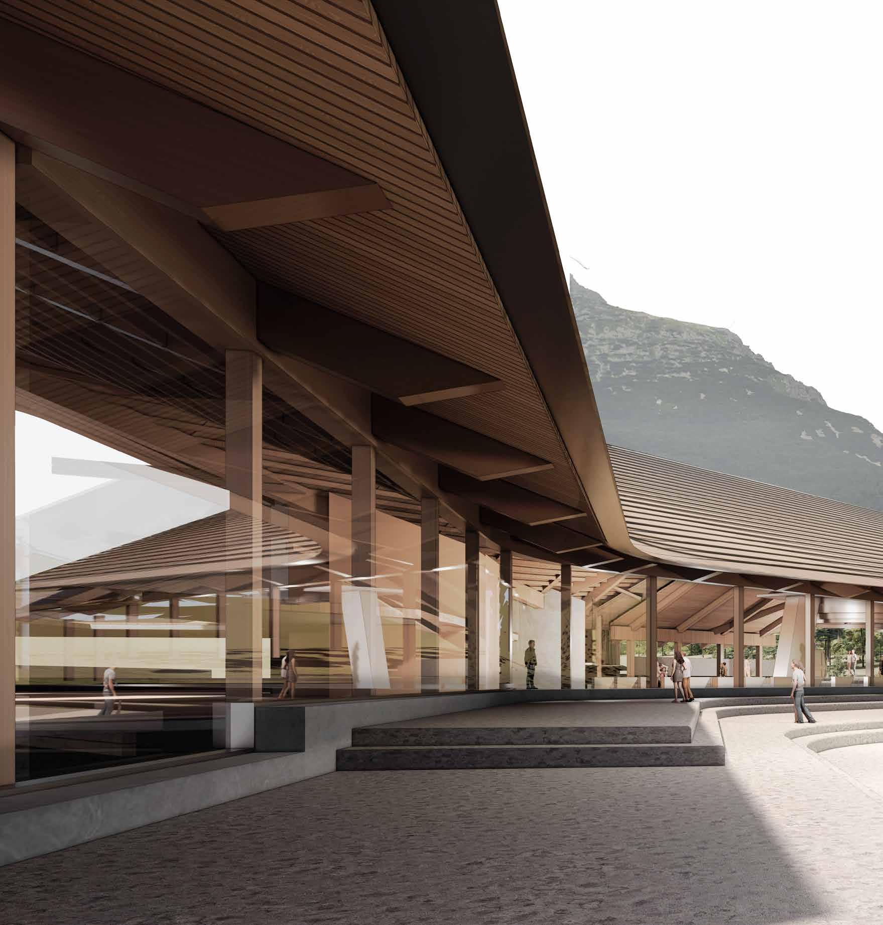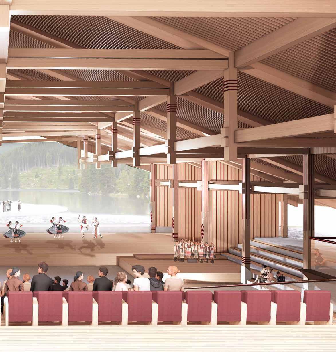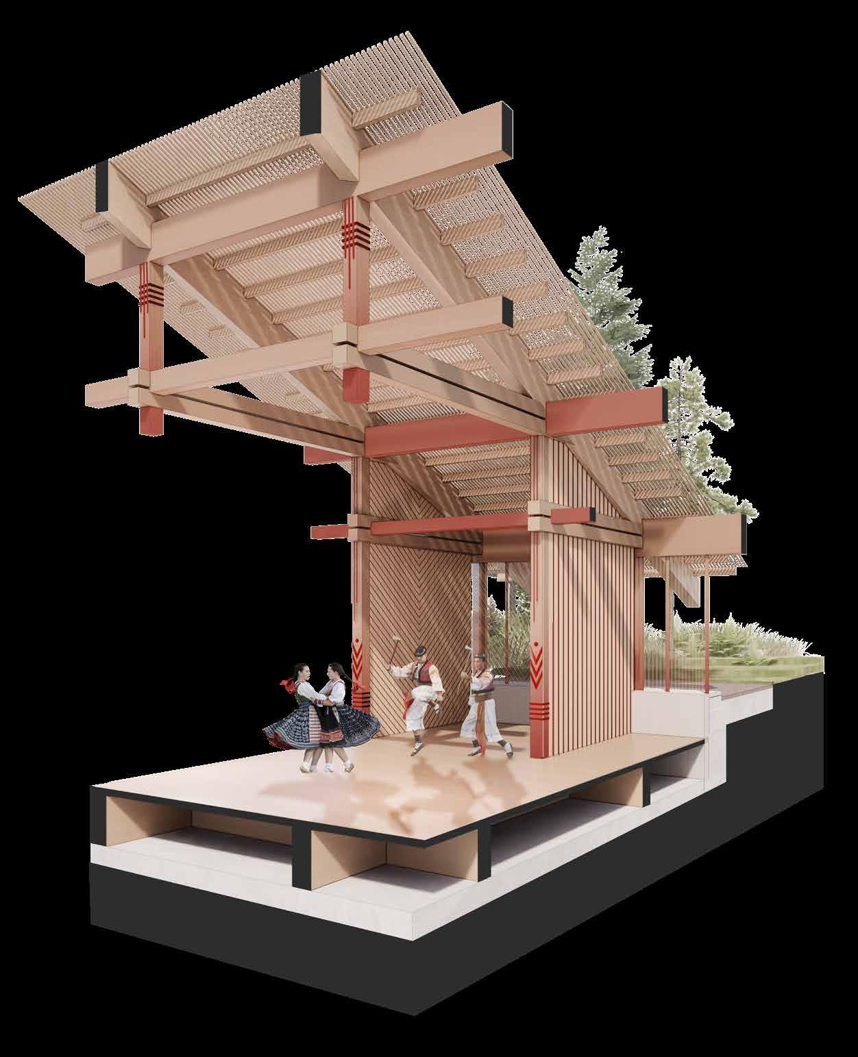 Merging the representational and cultural with the infrastructural, it offers a programmatic fusion. As such it re-imagines the folk, civic, monument, and acts as a showcase of contemporary application of folk architectural principles.